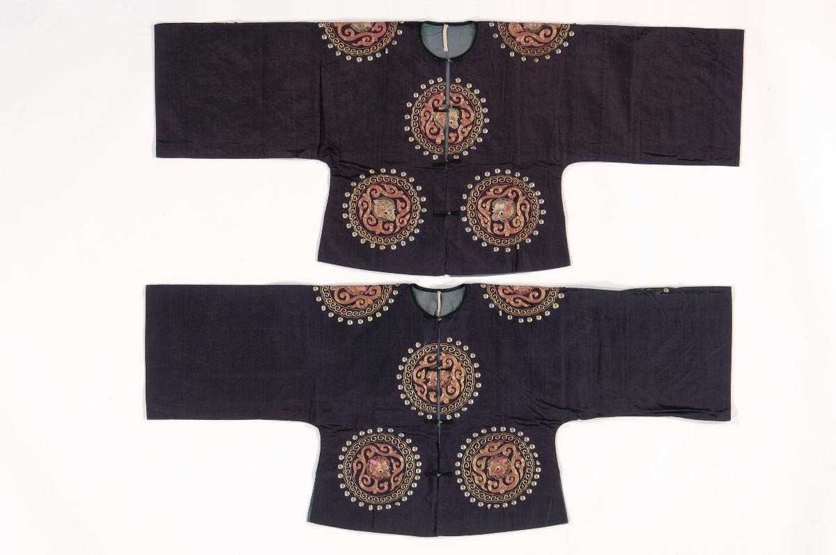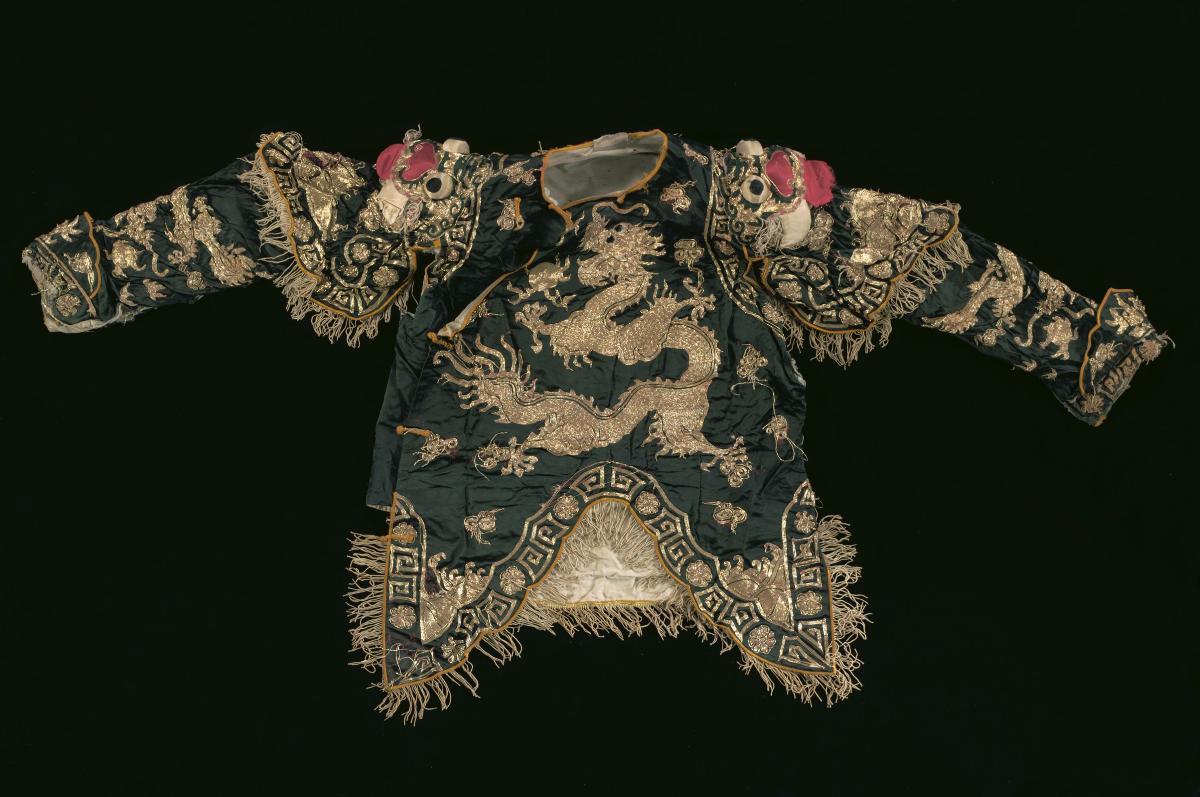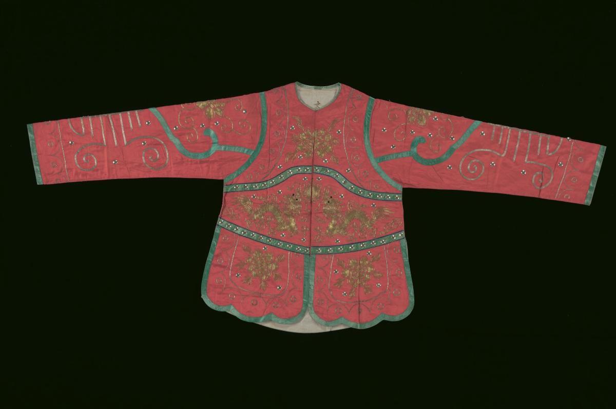A purple top with embroidered gold dragon motifs worn by a ‘wu sheng’ in a Chinese opera