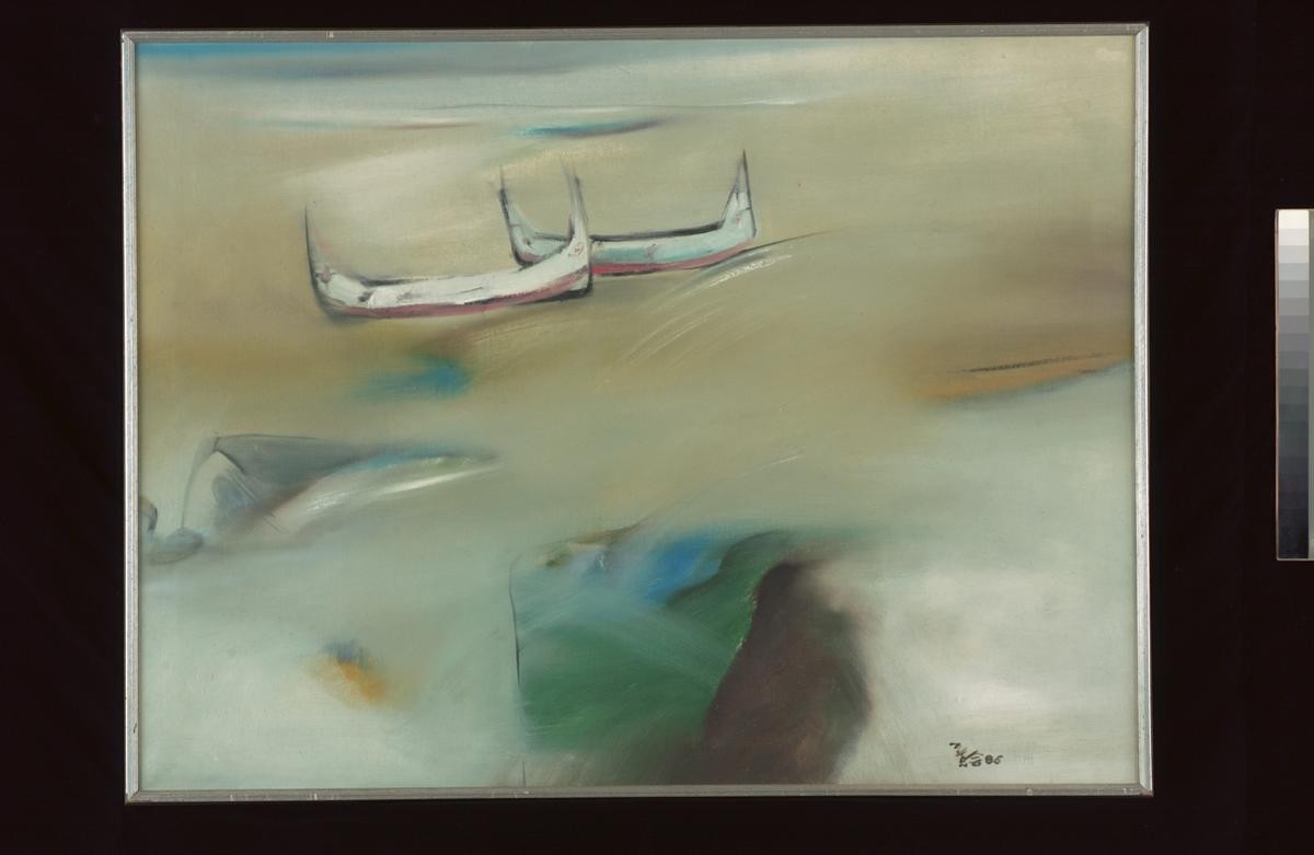 Mohammad Din Mohammad (1955-2007) was born in Malacca, Malaysia and immigrated to Singapore when he was two years old. He studied art at the Nanyang Academy of Fine Arts, majoring in Western painting from 1973 to 1976. Mohammad was known for his provocative work which combines Western ideas with his cultural background. His works are also deeply rooted in Sufi mysticism, which he practised throughout his life, and often feature symbols and icons that convey his ideas and Islamic philosophies.Mohammad’s intention of infusing his spiritual energy into his work is executed in a style similar to Impressionism. This painting captures the movement of the orchids with free and fluid brushstrokes. ‘Orchid in the Wind’ is an example of Mohammad’s exploration and investigation into the formal elements of painting, a marked departure from his earlier sculptures and assemblages.