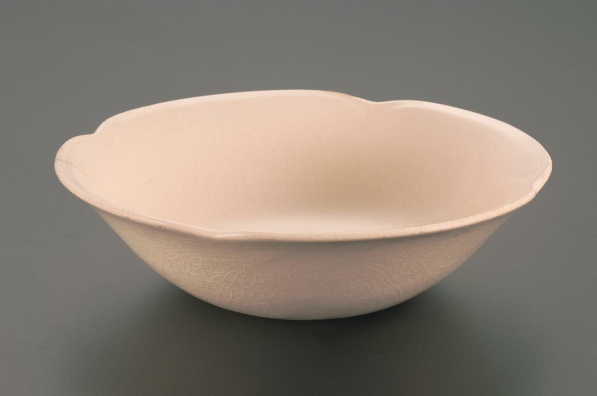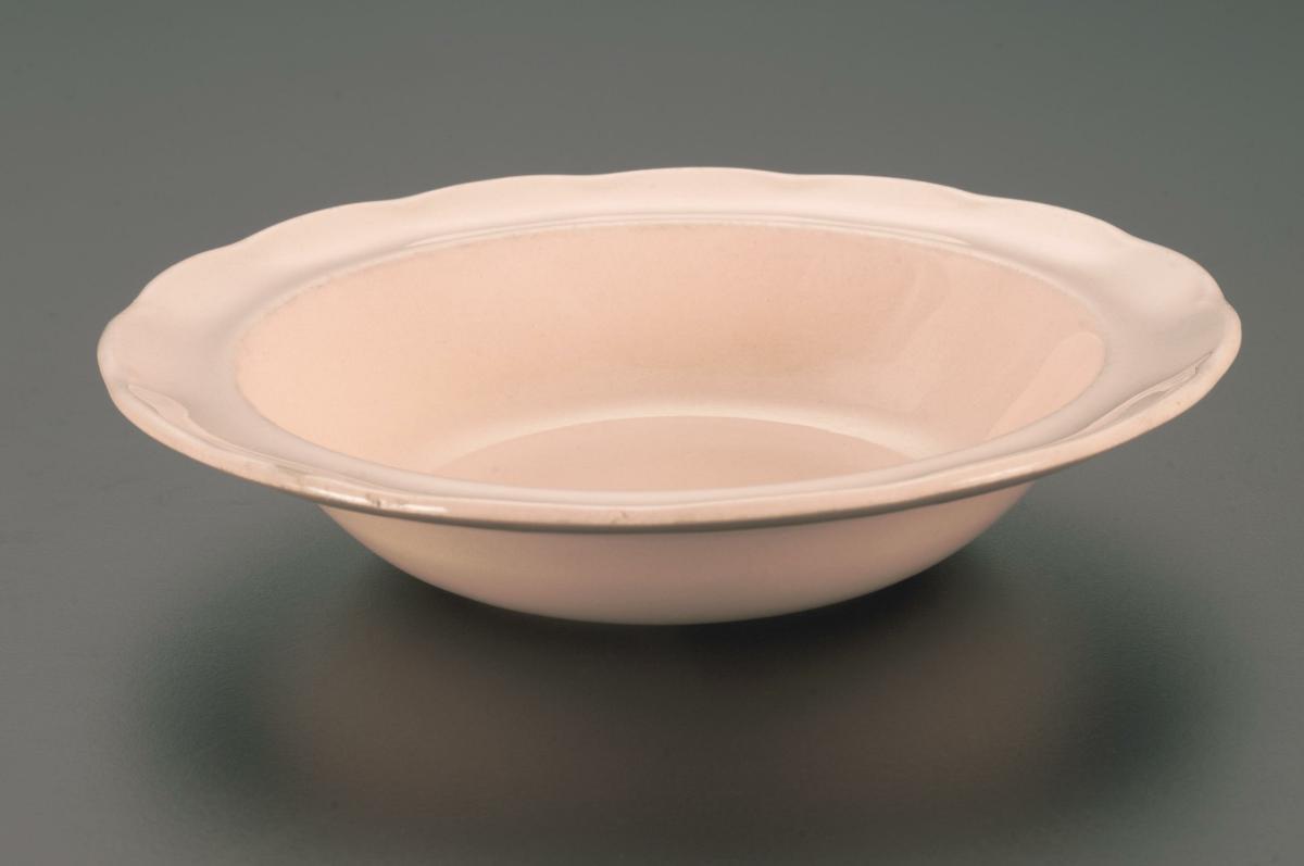 Pink porcelain dessert bowl with scalloped rim from Stamford Cafe