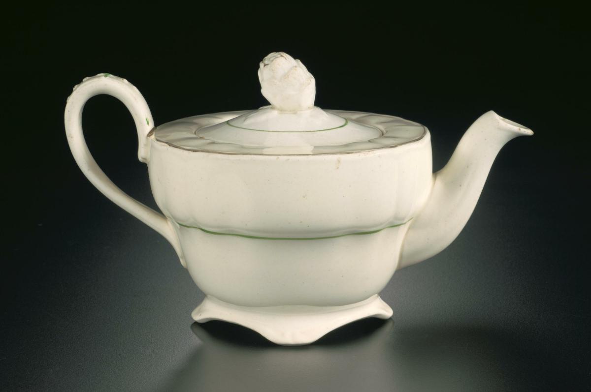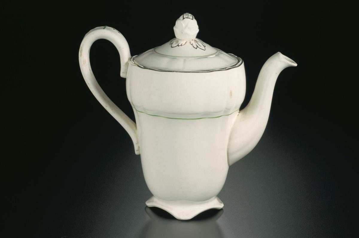 White porcelain teacup with floral detailing and gilt borders from Stamford Cafe