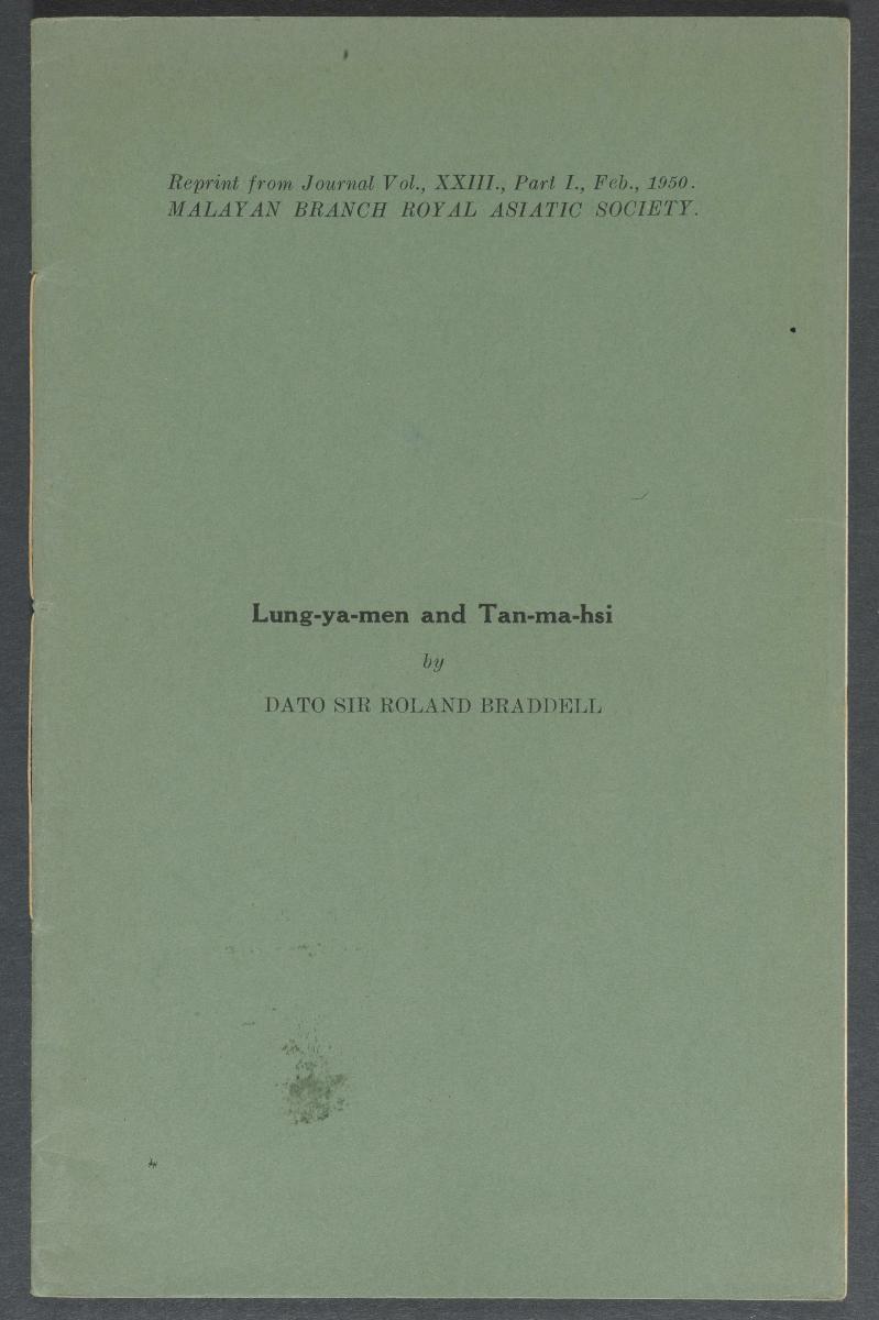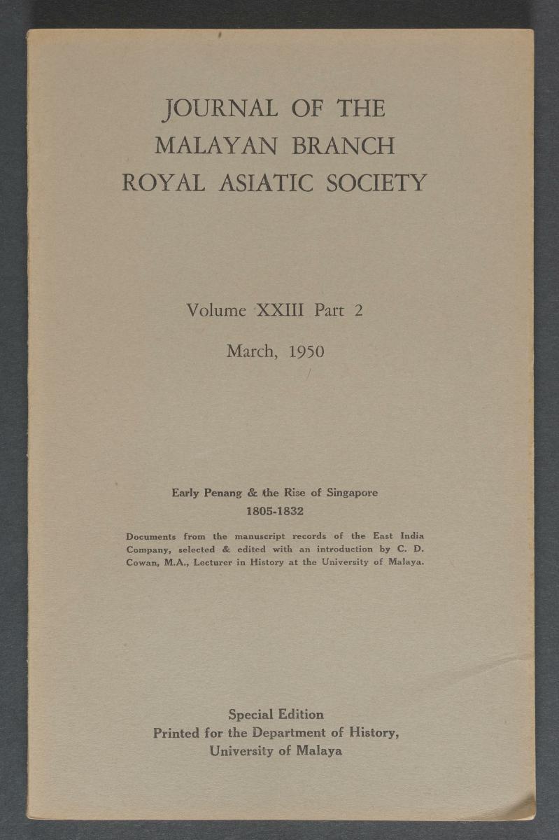 The Singapore Chronicles. 1824-37 JMBRAS, XXVI, 1, 1953