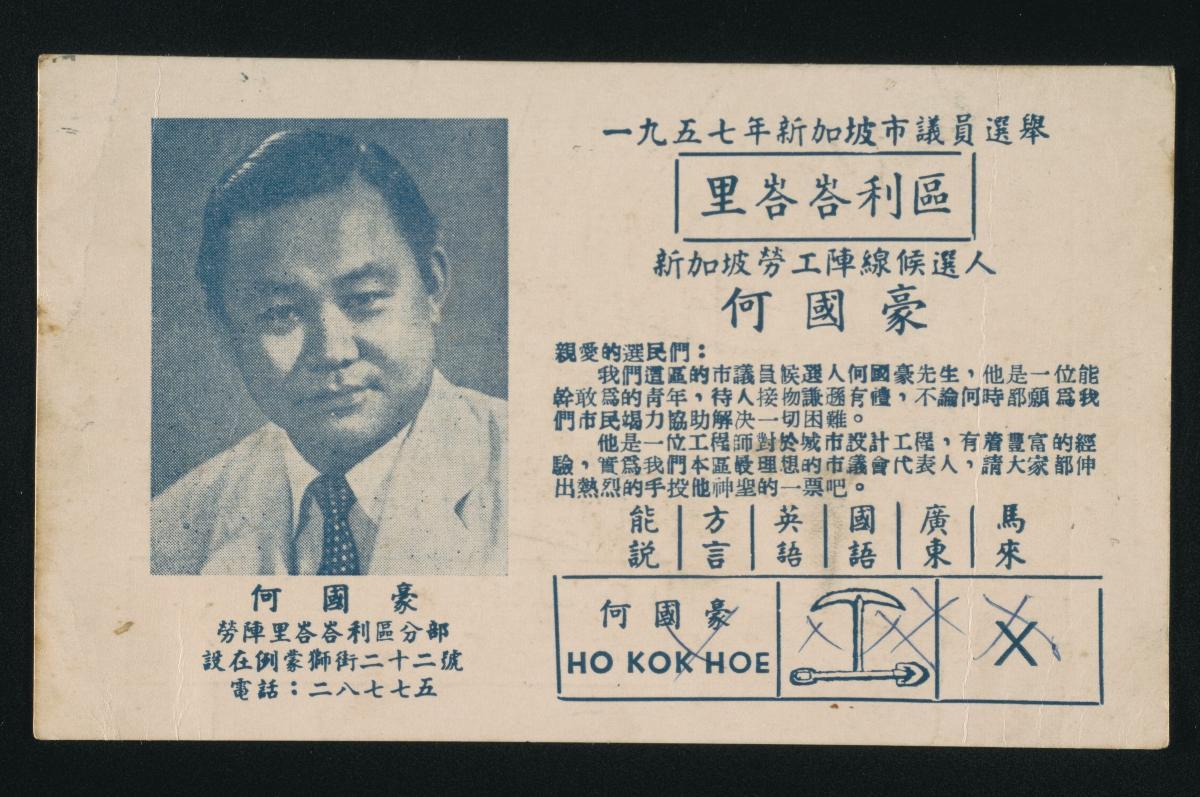 A Labour Front (LF) election campaign leaflet on Ho Kok Hoe
