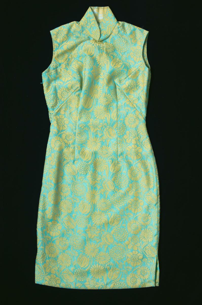 This silk cheongsam belonged to the donor’s late mother, May Wong, known as the First Lady of Charity in Singapore. Born in Sacramento, California, Wong settled down in Singapore after marriage with the late bank manager, Wong Shiu Kei. She held positions such as president of the Chinese Women’s Association and chairman of the Henderson Senior Citizens’ Home. Wong liked to wear the cheongsam to assert her identity as a Chinese.