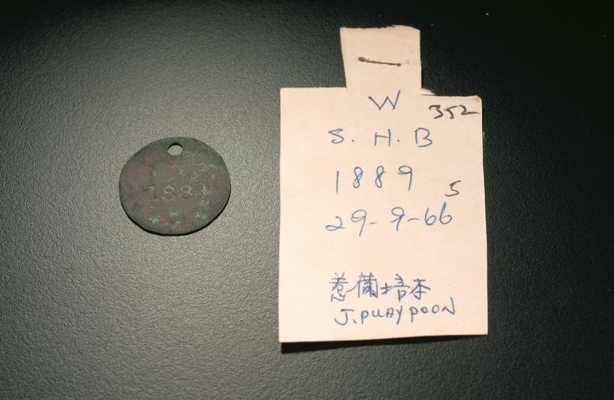 This identification disc belonged to a victim of the Japanese Occupation, Quan Sing Eng. It was excavated from a site at Jalan Pui Poon in 1966.