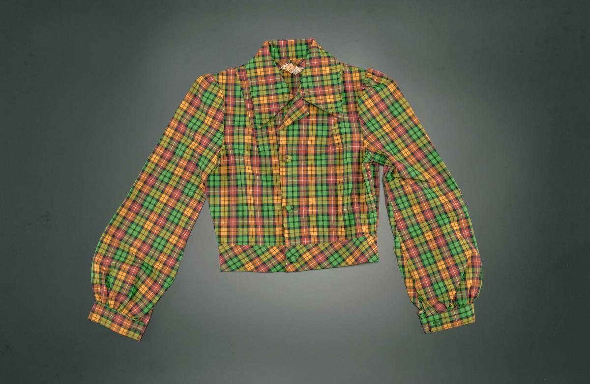 This yellow cropped jacket is worn with a matching dress. The outfit belonged to the donor’s mother, Veronica Lee Kim Lian, who passed away in 1964. This outfit does not only reveal the unique fashion taste and style of the wearer, but also reflects the increasingly Western and modern identity of Singaporean women from the 1950s onwards. Veronica worked as a sales representative at Robinsons Department Store. Her choice of garments was thus relatively trendy and up-to-date.