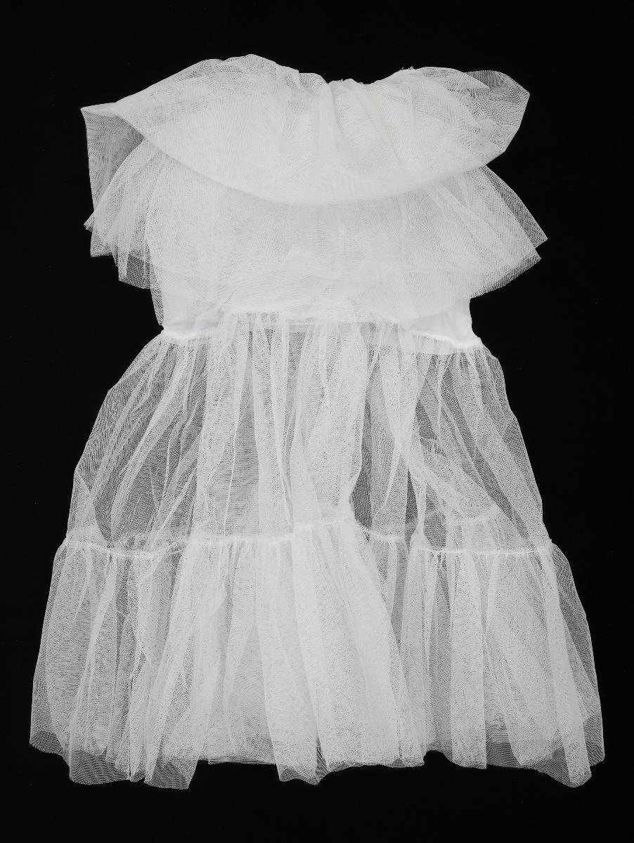 This red-tiered can-can underskirt was probably worn with this red dress (2010-04863) to achieve a full-skirted look. The underskirt belonged to the donor’s mother, Veronica Lee Kim Lian, who passed away in 1964.