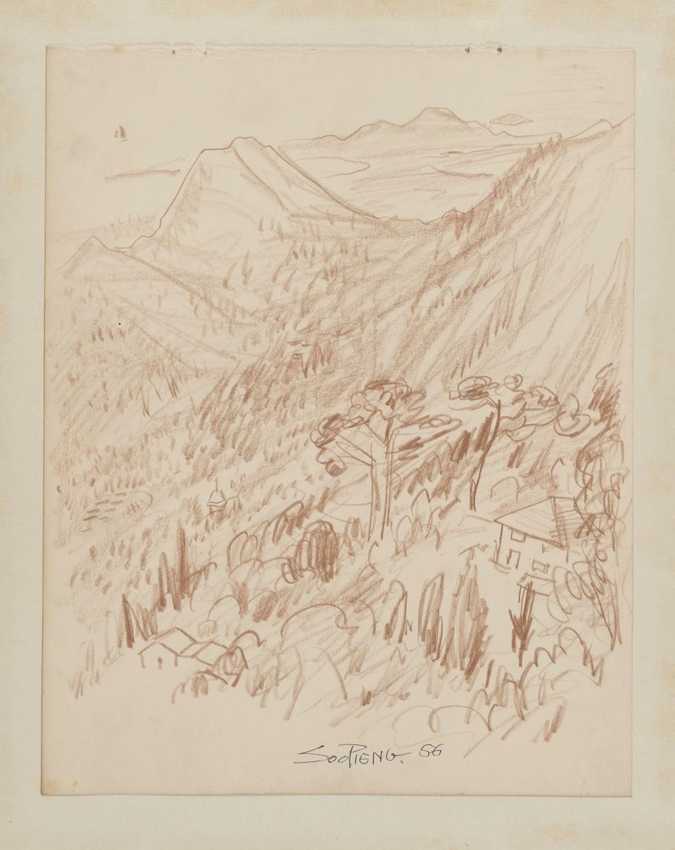 Cheong Soo Pieng, born in Xiamen (Amoy), China in 1914, was accomplished in ink painting having received training in art at Xiamen Academy of Art and Xinhua Academy of Fine Arts in Shanghai. A year after his arrival in Singapore in 1946, he started lecturing at Nanyang Academy of Fine Arts and stayed on till 1961. However it was a trip taken with fellow artists Chen Chong Swee, Chen Wen Hsi and Liu Kang in 1952 to Bali to seek inspiration and seek fresh subject matter that sealed his standing as a pivotal figure in Singapore’s modern art development. He was part of a group of artists that attempted to articulate a style identifiable and pertinent to post-war Singapore, then known collectively with Malaysia, as Malaya. This style, later crystallized as the Nanyang style, provided a foundation upon which future generations of artists learned and expanded on. A key element of the Nanyang style is the synthesis of Chinese pictorial elements and the diverse formalistic qualities from the School of Paris. In 1962, the Singapore government awarded Cheong with the Meritorious Service Medal. He passed away in 1983.‘Untitled (Mountain Scene)’ is an example of Cheong’s scrutiny of and interest in depicting the landscape around him.