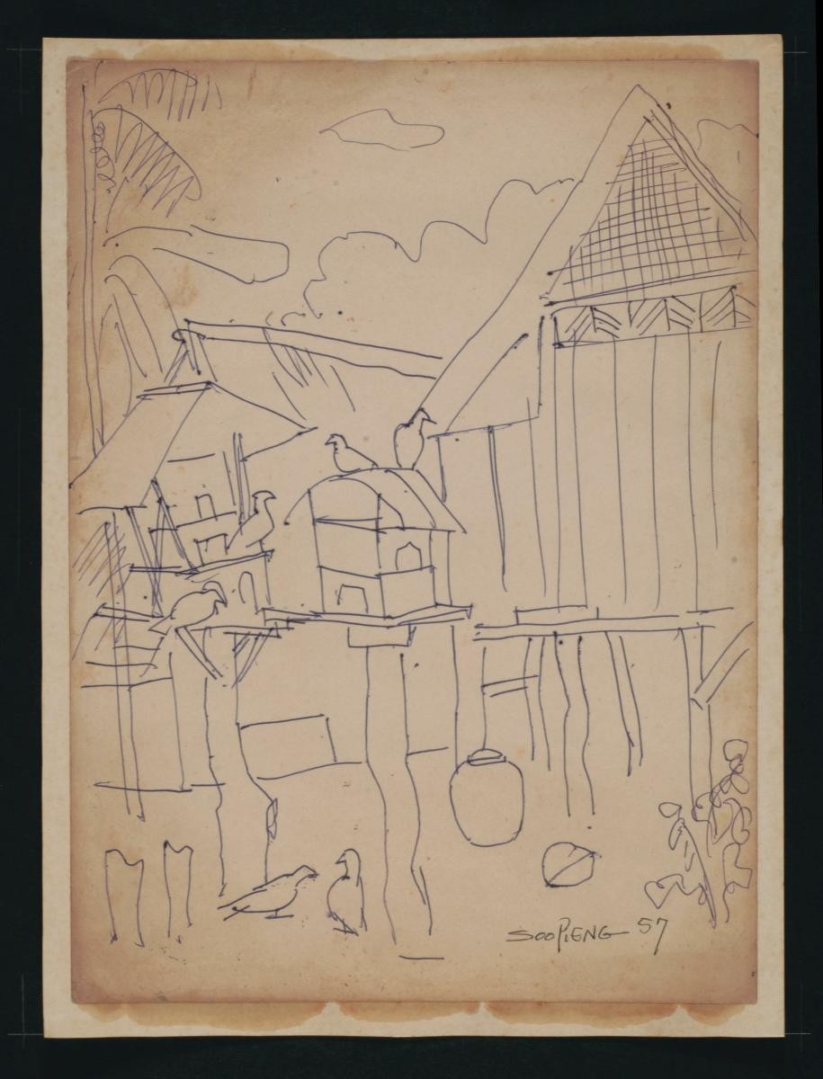 Cheong Soo Pieng, born in Xiamen (Amoy), China in 1914, was accomplished in ink painting having received training in art at Xiamen Academy of Art and Xinhua Academy of Fine Arts in Shanghai. A year after his arrival in Singapore in 1946, he started lecturing at Nanyang Academy of Fine Arts and stayed on till 1961. However it was a trip taken with fellow artists Chen Chong Swee, Chen Wen Hsi and Liu Kang in 1952 to Bali to seek inspiration and seek fresh subject matter that sealed his standing as a pivotal figure in Singapore’s modern art development. He was part of a group of artists that attempted to articulate a style identifiable and pertinent to post-war Singapore, then known collectively with Malaysia, as Malaya. This style, later crystallized as the Nanyang style, provided a foundation upon which future generations of artists learned and expanded on. A key element of the Nanyang style is the synthesis of Chinese pictorial elements and the diverse formalistic qualities from the School of Paris. In 1962, the Singapore government awarded Cheong with the Meritorious Service Medal. He passed away in 1983.'Untitled (Sketch of Six Cats)' is an indication that Cheong’s interest in the region also includes animals of the land.