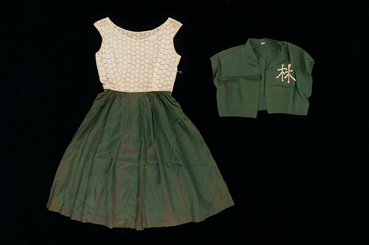 This yellow cotton dress with black velvet straps is worn with a matching cropped jacket. The nipped-in waist is typical of the 1950s Western silhouette. The outfit belonged to the donor’s mother, Veronica Lee Kim Lian, who passed away in 1964. This outfit does not only reveal the unique fashion taste and style of the wearer, but also reflects the increasingly Western and modern identity of Singaporean women from the 1950s onwards. Veronica worked as a sales representative at Robinsons Department Store. Her choice of garments was thus relatively trendy and up-to-date.