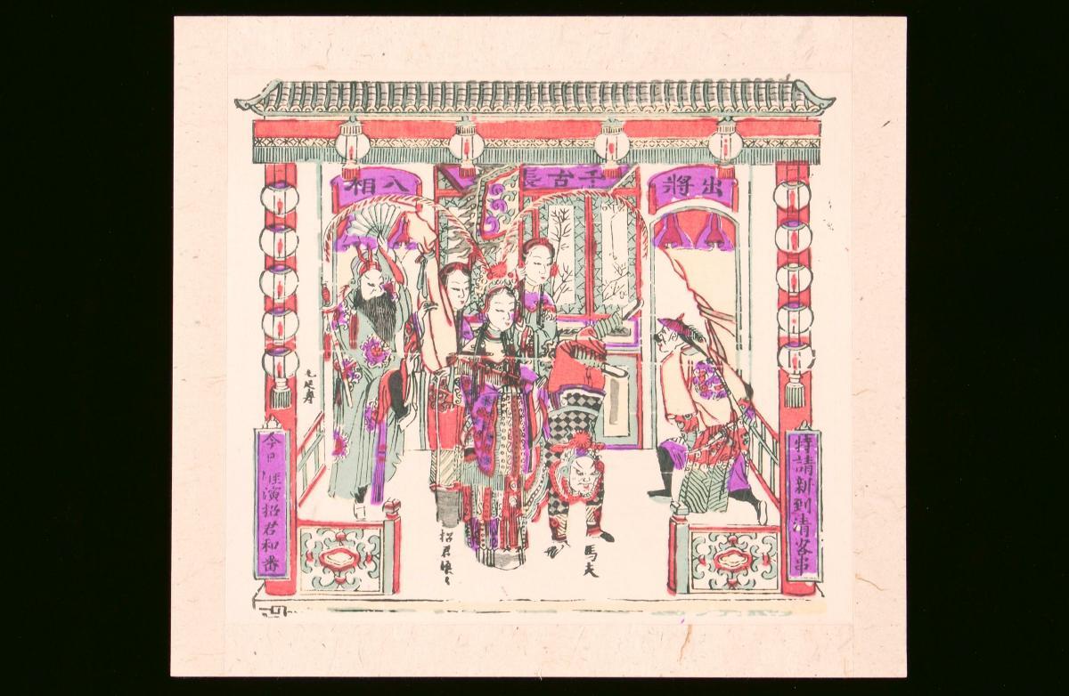 Chinese woodblock print depicting the opera ‘Visiting the In-Laws’
