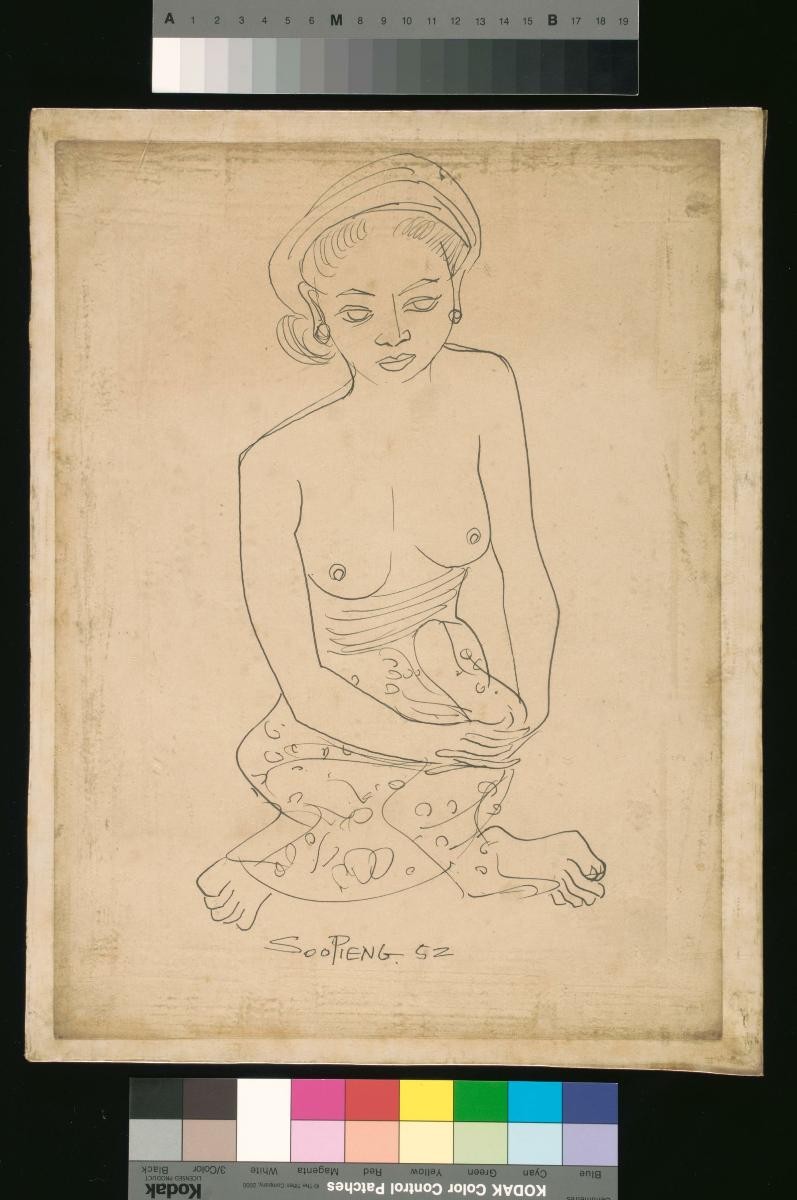 Cheong Soo Pieng, born in Xiamen (Amoy), China in 1914, was accomplished in ink painting having received training in art at Xiamen Academy of Art and Xinhua Academy of Fine Arts in Shanghai. A year after his arrival in Singapore in 1946, he started lecturing at Nanyang Academy of Fine Arts and stayed on till 1961. However it was a trip taken with fellow artists Chen Chong Swee, Chen Wen Hsi and Liu Kang in 1952 to Bali to seek inspiration and seek fresh subject matter that sealed his standing as a pivotal figure in Singapore’s modern art development. He was part of a group of artists that attempted to articulate a style identifiable and pertinent to post-war Singapore, then known collectively with Malaysia, as Malaya. This style, later crystallized as the Nanyang style, provided a foundation upon which future generations of artists learned and expanded on. A key element of the Nanyang style is the synthesis of Chinese pictorial elements and the diverse formalistic qualities from the School of Paris. In 1962, the Singapore government awarded Cheong with the Meritorious Service Medal. He passed away in 1983.‘Untitled (Woman Crossing the Bridge)’ is a reflection of the ‘localness of the place’, a theme that resonates strongly in Cheong’s art. This is one of countless sketches he made of the people and landscape of Southeast Asia which collectively provide useful entry points to understand the sources of his iconography.