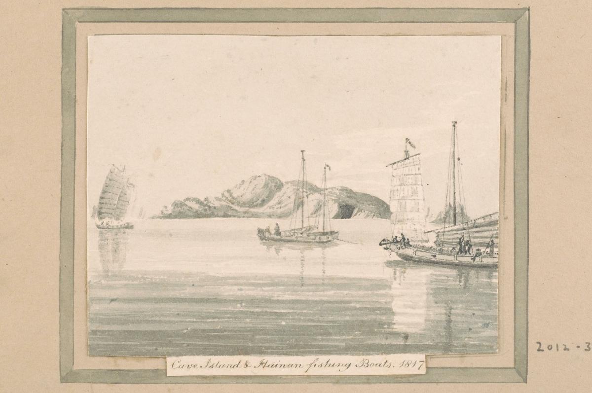 This drawing is titled 'Peiho Boats, 1816'. It is one of 41 drawings belonging to the Houghton Album, which contains a compilation of views drawn by John Michael Houghton (c. 1797–1874), a midshipman who served on board the HMS Discovery as part of the naval escort that accompanied Raffles on his voyage to Singapore in 1819. The Discovery was commanded by Capt. Daniel Ross (1780–1846), the renowned hydrographer who is documented as having assisted Raffles in choosing the site for the latter’s historic landing on the island on 28 January 1819.