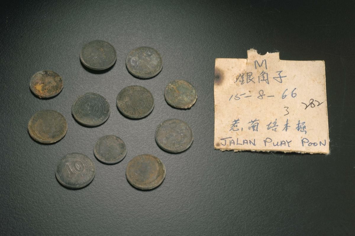 These coins belonged to a victim of the Japanese Occupation. They were excavated from a site at Jalan Pui Poon in 1966.