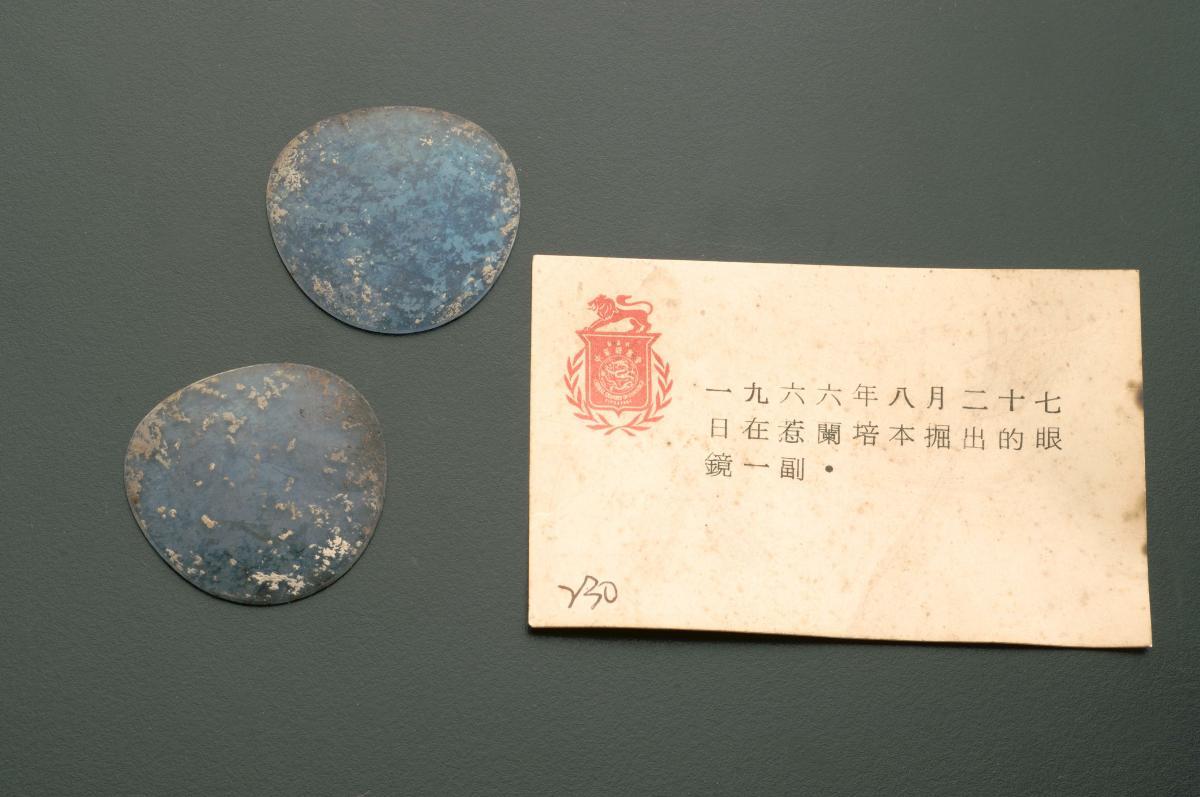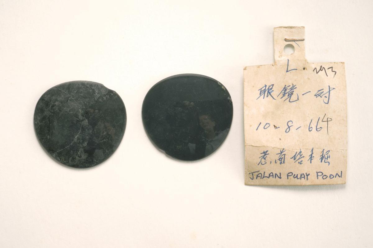 These are the fragments of a pair of sunglasses worn by a victim of the Japanese Occupation. They were excavated from a site at Jalan Pui Poon in 1966.