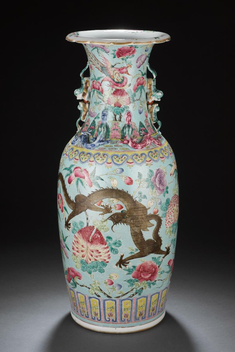 This famille-rose (粉彩, Fencai) porcelain vase belonged to the Cantonese Rattan Industry Association.