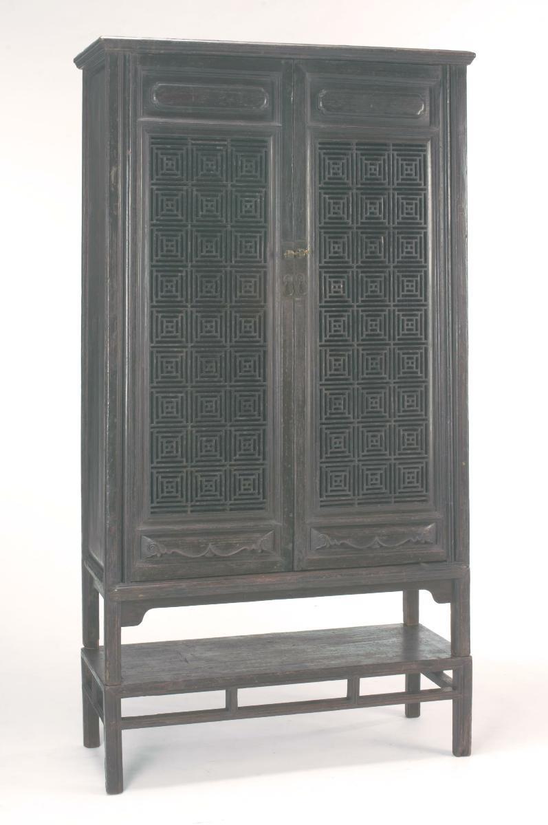 This cabinet is made of red and gold gilt wood. There are numerous floral motifs are carved along the front of the cabinet doors and the drawers below. The carvings along the bottom of the cabinet are typical of Palembang styles of furniture, with similar wave like patterns found on other types of furniture from that area.Display cabinets such as this from Palembang in Indonesia were used by Peranakan Chinese in the region around the late 19th and early 20th century. They were most likely commissioned as gifts to the bride and groom, as a part of their wedding trousseau and would have been used as storage for either handkerchiefs or clothes.