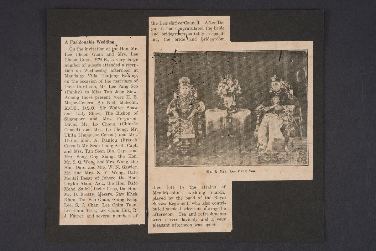 This is a photograph portrait of Tan Teck Neo, daughter of Tan Keong Saik and second wife of Lee Choon Guan. She was, like her husband and father-in-law, relentless in her charity work, which often put her in the limelight. In 1915, Mrs. Lee founded the Chinese Ladies' Association (renamed the Chinese Women's Association in 1960). Three years later, she was honoured as a Member of the Order of the British Empire (MBE) for her charitable works and for her contributions to the British Red Cross during the First World War. Mrs. Lee was also well known for throwing lavish parties for the rich and famous, and these social events brought the Chinese and the British communities together at a time when interactions between them were rare.