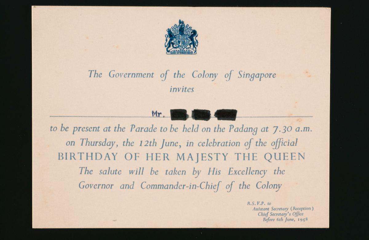 This photograph is part of a series which depicts the sights and scenes of 19th and 20th century Singapore.This picture shows a police contingent at the Queen’s Birthday Parade on the Padang on 5 June 1952. It was Queen Elizabeth II’s first birthday since her accession to the throne in the same year. Although the Queen was actually born on 21 April 1926, it was customary to celebrate the British sovereign’s birthday publicly on a day during the summer, when better weather is more likely.