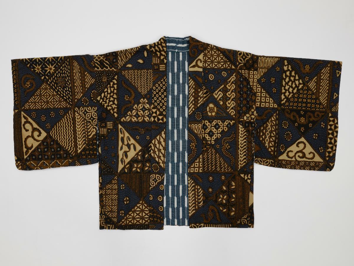 This blue batik cropped jacket is worn with a matching cheongsam.The cheongsam is a ubiquitous Chinese dress that first gained popularity in China in the early 20th century. Feted for its feminine charm, the dress was an essential part of women’s everyday wear up till the 1960s. It is usually bespoked to ensure a fitted silhouette and its distinctive features include a high collar, side slits at the hem and a decorative knot and loop fastener for the collar or shoulder flap, called the ‘hua niu’.The cheongsam has its origins in the long and loose-fitting robes worn by the Manchu women of the Qing Dynasty, called the “banner gown” (‘qipao’). Initially worn loose and long in the 1920s and 1930s, the cheongsam had evolved by the 1940s and 1950s to become shorter and more form-fitting. Although its popularity was overtaken by mass-produced, Western-style garments during the 1970s and 1980s, the dress experienced a fashion renaissance in the 1990s when it became the inspiration for some of the runway collections created by various internationally-renowned fashion designers. Today, the cheongsam remains a subject of reinterpretation and its style is constantly being updated.