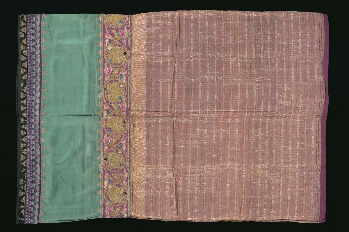 This skirt was woven with two-colour threads, hence the rich ground of red and orange tones. Above the hem, is a supplementary weft woven band of geometric designs in gold-wrapped thread.This type of skirt is more typical of Lao dress of the 1950s. It retains the tradition wrap-around waistband, unlike the more tailored versions that became popular in urban areas.