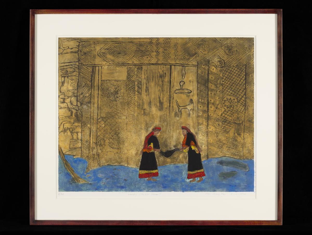 This photograph is part of a set acquired from the National Geographic Society, a non-profit scientific and educational institution. The photographs depict the sights and scenes of Singapore, Malaysia, Thailand, and Indonesia. This particular photograph shows a woman washing her laundry in Java, Indonesia.