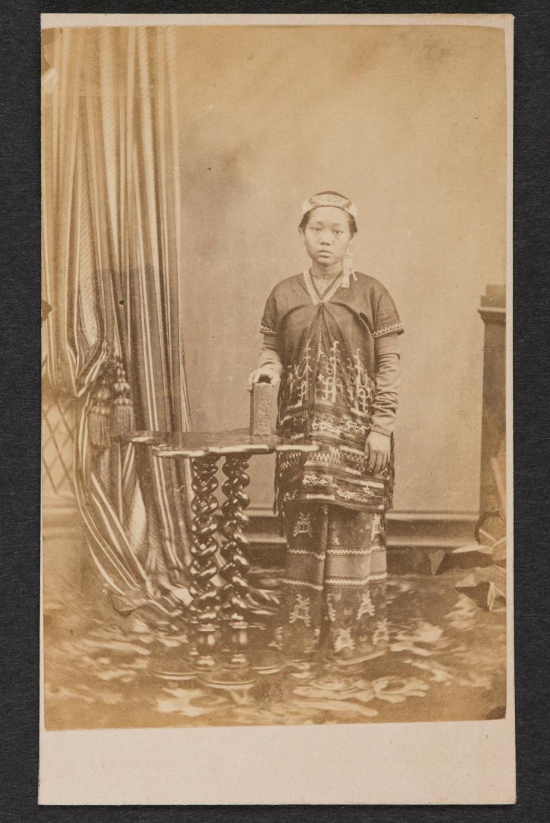 This carte de visite comes from a group of 44 images of Southeast Asia, thought to have been collected by a visitor to the region in the second half of the nineteenth century. The carte de visite format - a small photograph pasted onto a card backing - was popularised as a souvenir in the mid nineteenth century. This group of photographs is indicative of the type of imagery that was popularised through the circulation of cartes de visite. It shows both generic images of local “types,” as well as various posed images of local dignitaries (such as King Norodom of Cambodia). As such, the group offers an insight into the work of the commercial photo studio in Southeast Asia in the nineteenth century.