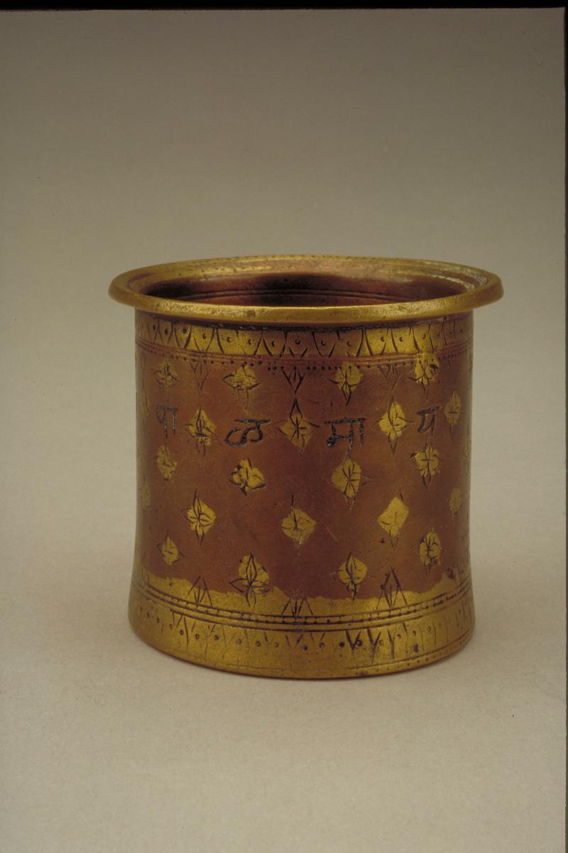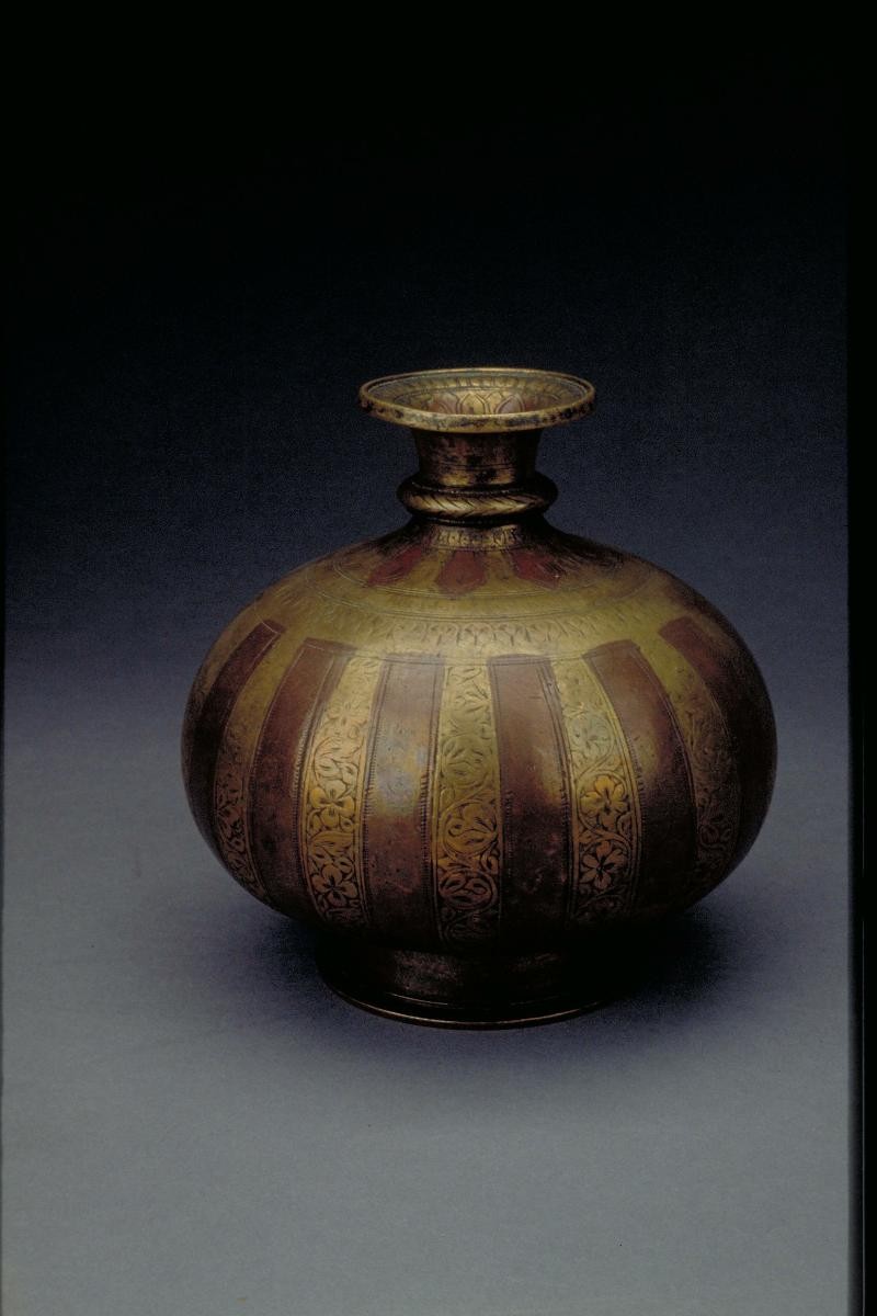 This elegant bottle has an unusual design of insects amongst rice stalks rendered in repousse work, beaten into the sheet silver. The bulbous form with stupa-like finial and symbolic motifs of abundance and wealth, are fitting for what is likely a ritual water bottle. The maker's mark 'Nam Heng' (南興) appears twice on the base. This reference to the southern region (Nanyang) or Southeast Asia, is typical of wares made by Chinese metalsmiths based in the region. Vessels made in sheet silver and gold were likely made by Chinese artists in Thailand for the aristocracy and other wealthy clientele during the 19th and early 20th centuries.