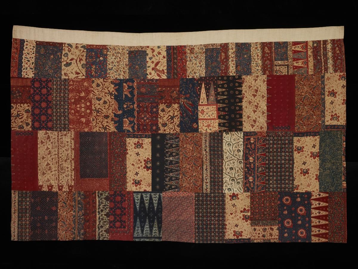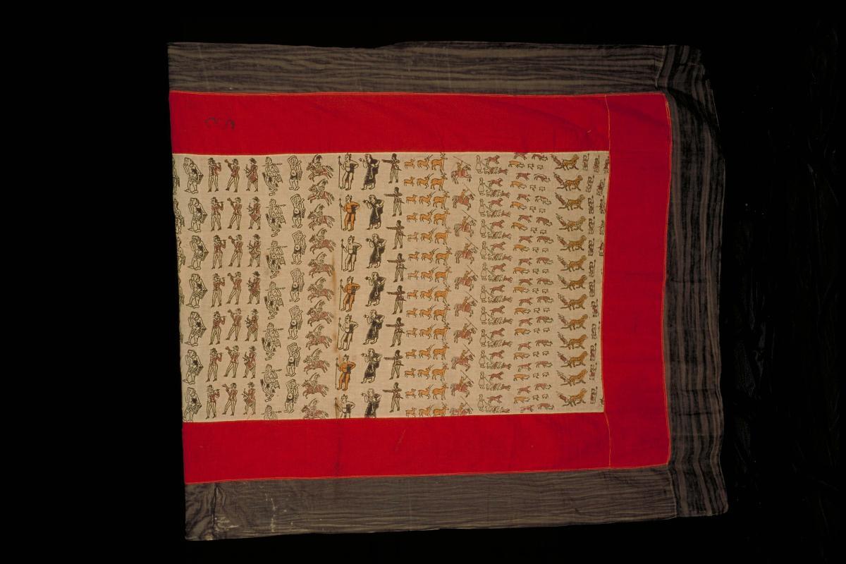 This banner features the motif of Guan Gong, a popular Daoist deity with the Peranakan community. Guan Gong was a historical figure born around 160CE, recognised for his loyalty and righteousness as a great military strategist during the late Eastern Han Dynasty and the Three Kingdoms period. By the Ming dynasty (15th century), his status was elevated to become one of the central gods of the Daoist pantheon. This religious image was possibly used as an image of worship because of the attributes he is holding – the Guan dao (polearm) signifying his position as ‘god of war’ and the book, representing his status as the ‘god of literature’.