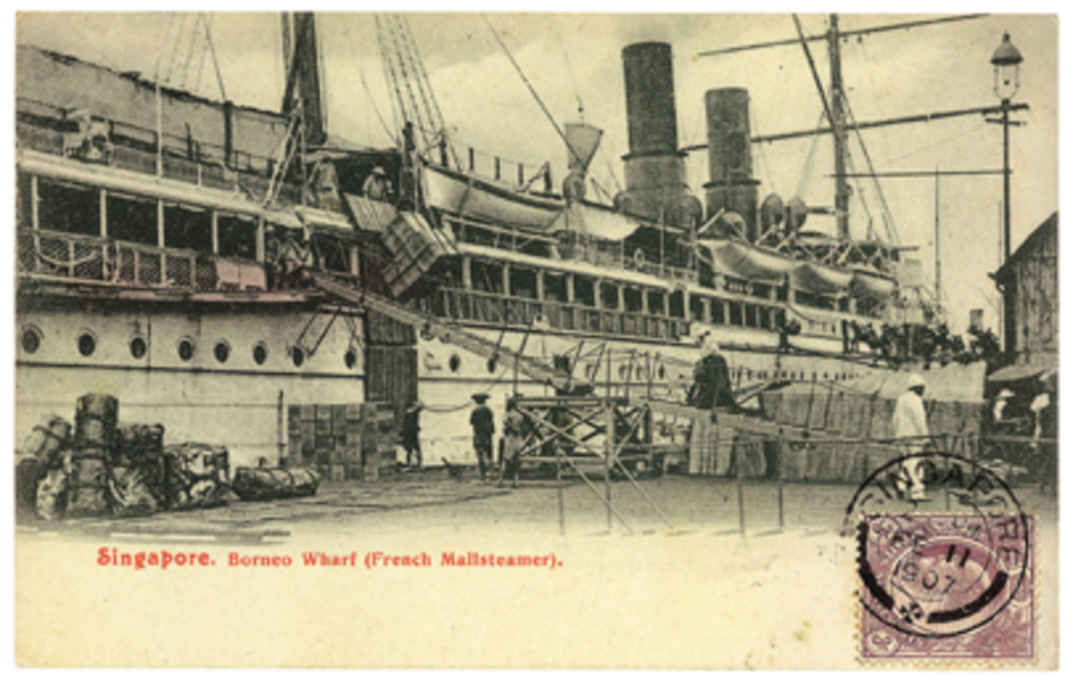 1907 German Mailsteamer at Borneo Wharf Postcard