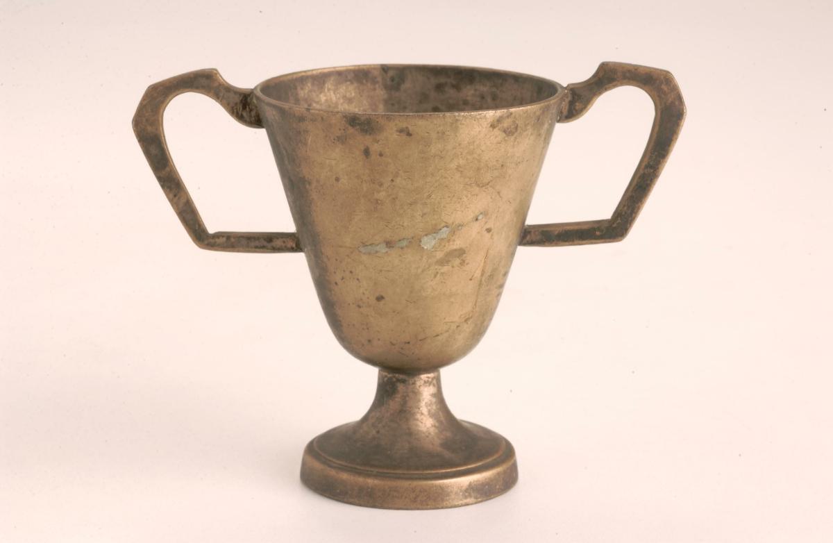 This silver plated trophy is a rare memento of tradition of the Tamils Festival sporting competitions in 20th century Singapore. This trophy was awarded to the Singles Champion, Badminton.