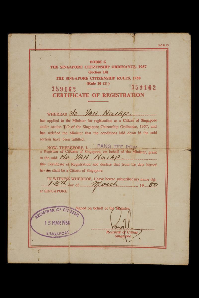 Such Certificates of Registration were issued by the Consulate General of the Republic of China in Singapore to Chinese immigrants. This card belongs to Mr Liang Qian, who was a 46 year-old businessman at the time of the issuance of this document in October 1948. According to the information filled in the card, Mr Liang was a businessman whose native place was Zhongshan in Guangdong province, China.