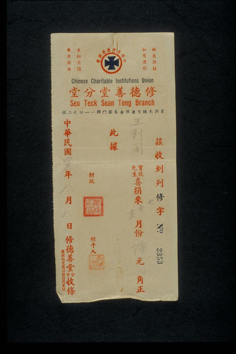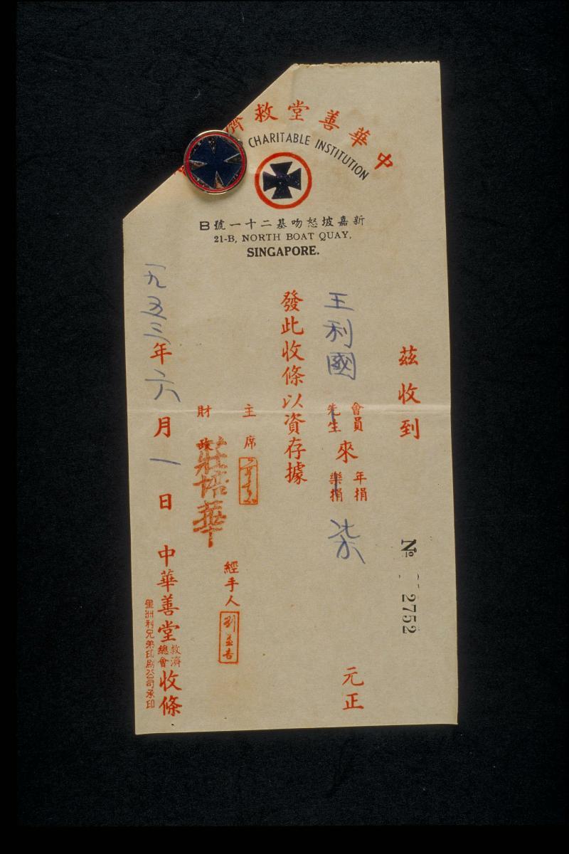 This donation receipt was for a sum of $50, in aid of the anti-Japanese war efforts.