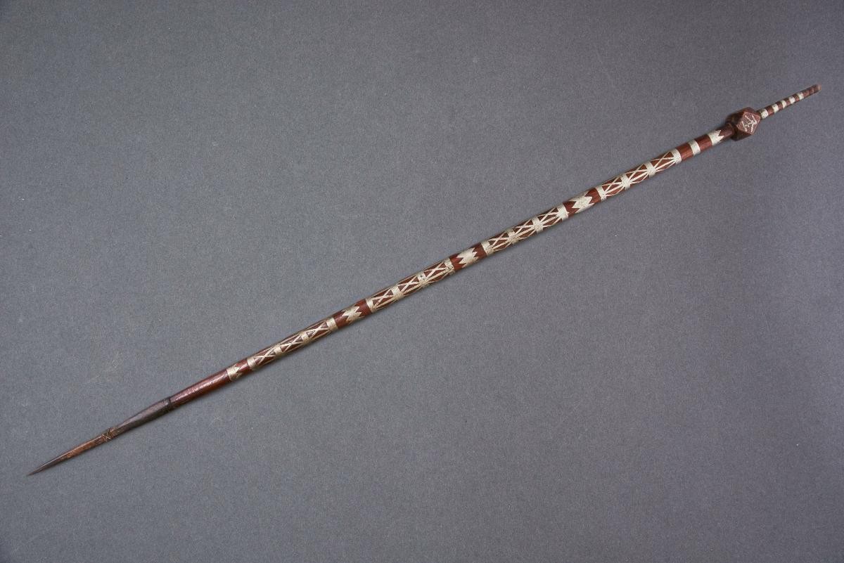 This shaman's staff from Lake Toba, in the Batak lands of North Sumatra was made in the early 1970s for sale to tourists. It resembles approximately the powerful traditional staffs of the 19th and early 20th centuries but is carved with less expensive, soft wood in a simple style which could be easily and quickly replicated.