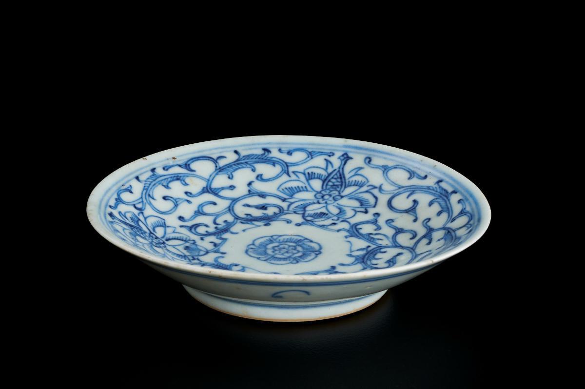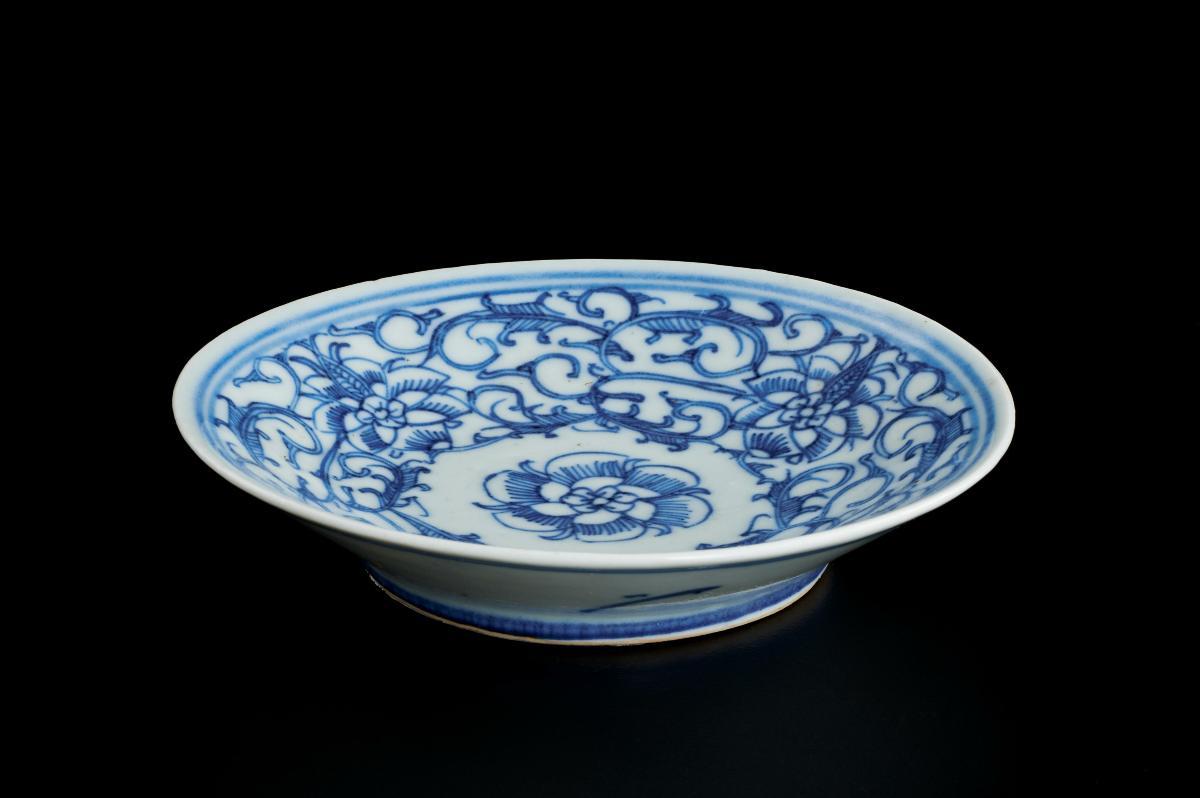 Blue-and-white dish with sweet pea design
