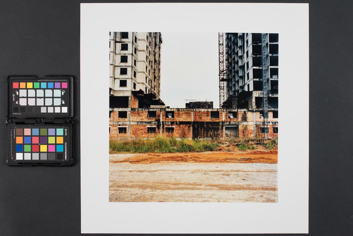 Standing Still is a series of 116 c-type photographs made by Gill during her travels across the Malaysian countryside over a period of three years (2000-2003). Taken in the aftermath of the 1997 financial crisis, when numerous building projects lay vacant and wanting, the artist describes the simultaneous encounter and confrontation with each of these sites, as “a place in time, where, one might say, the past lies in ruins, unkempt and untended, and the future also somehow has been abandoned and has started to crumble. No way forward, no way back.”