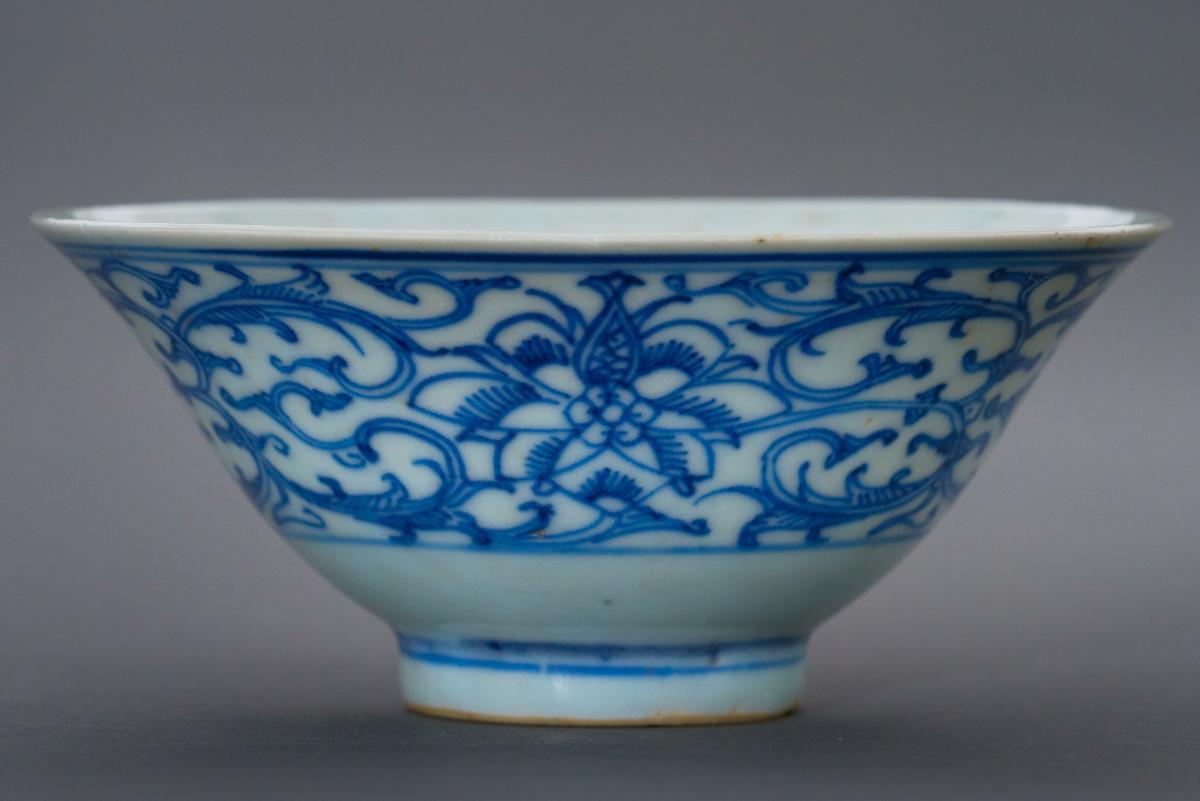 Blue-and-white bowl with sweet pea design