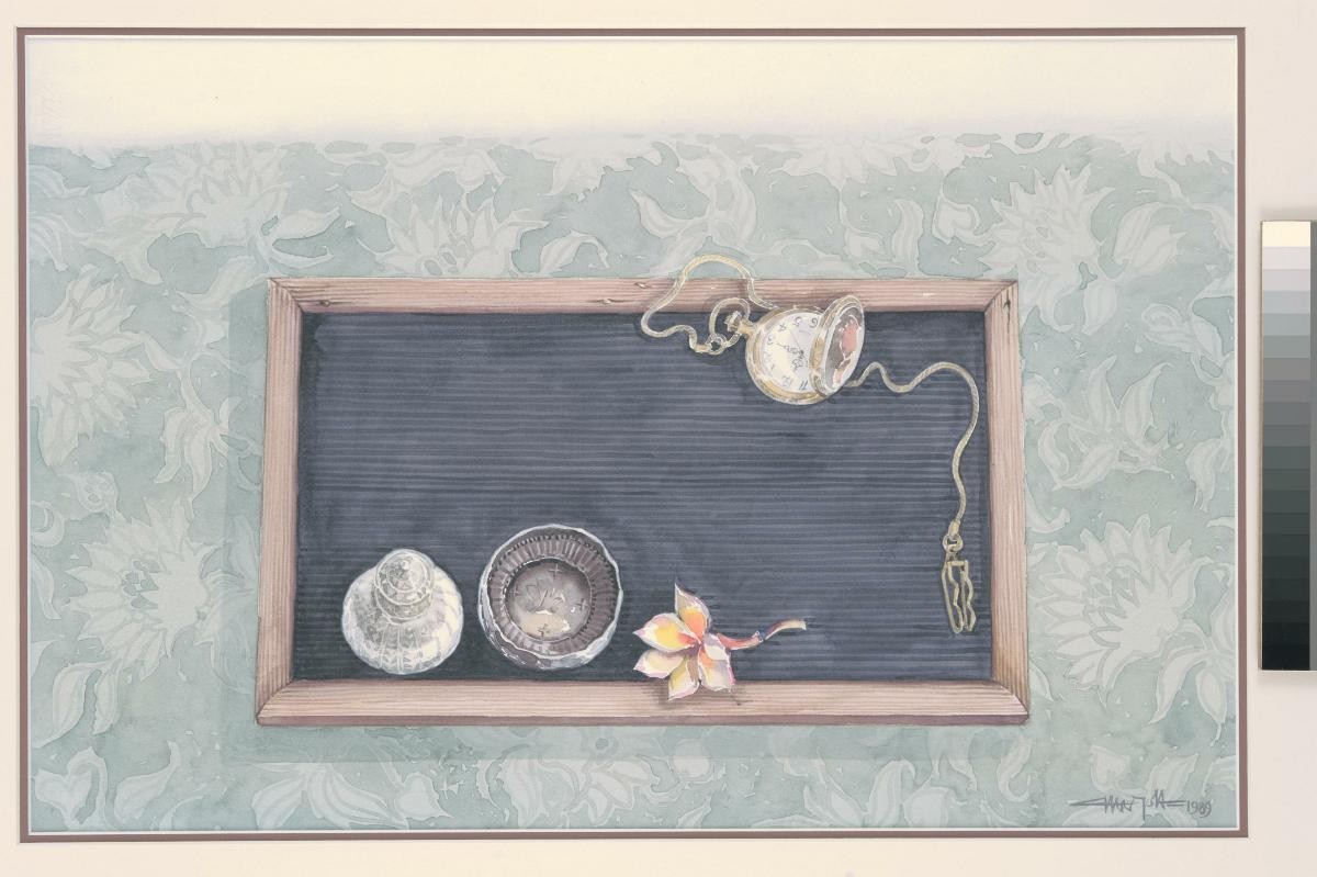 This set of items comprises a silver inkwell with tray, a farewell address, and a framed photograph. The set was presented to John Panton Gubbins, a judge, by the citizens of Delhi in 1852 (then under the de facto control of the British East India Company) on the occasion of his retirement after twenty-seven years of service. According to the address, he was a well-respected member of the community, interested in Indian culture and fluent in Urdu and Persian.The inkwell and tray feature scrolling floral decoration typical of Kutch-style silver from the mid- 19th century, the tray resting on paw-like feet. The inkwell includes an Urdu dedication to Gubbins in nasta’liq script. On the underside is a similar dedication in English. The folio is also in Urdu, written in nasta’liq, and comprises the text of the farewell address followed by pages containing the signatures and seals of important residents of Delhi. Inscribed silver objects and farewell addresses were not uncommon retirement gifts for important individuals in India. This example is particularly notable in that it is one of the earliest known farewell addresses written in Urdu.