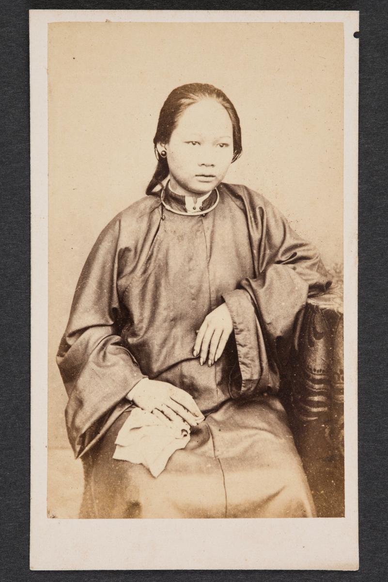 This carte de visite comes from a group of 44 images of Southeast Asia, thought to have been collected by a visitor to the region in the second half of the nineteenth century. The carte de visite format - a small photograph pasted onto a card backing - was popularised as a souvenir in the mid nineteenth century. This group of photographs is indicative of the type of imagery that was popularised through the circulation of cartes de visite. It shows both generic images of local “types,” as well as various posed images of local dignitaries (such as King Norodom of Cambodia). As such, the group offers an insight into the work of the commercial photo studio in Southeast Asia in the nineteenth century.