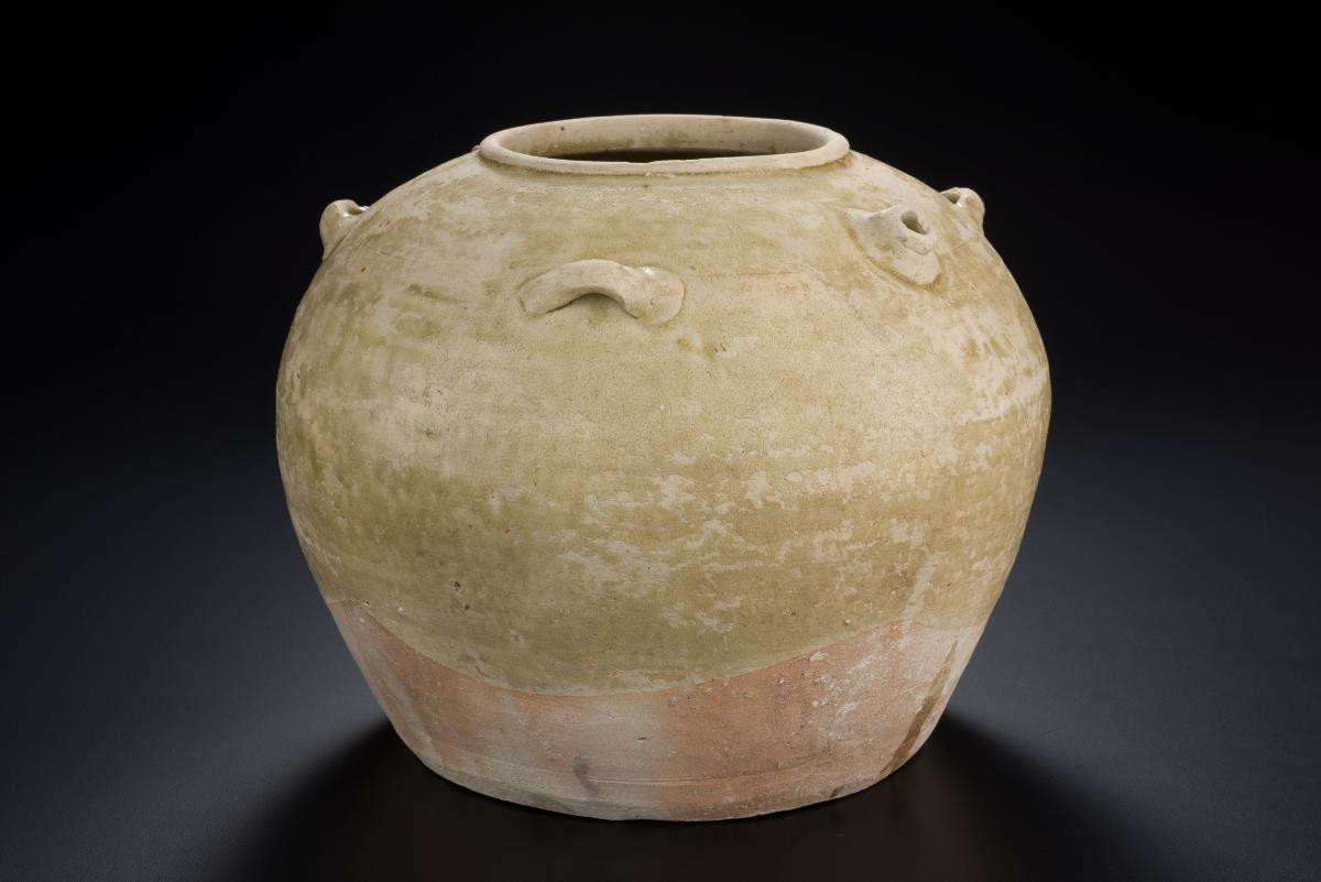 The Tang shipwreck contained many storage jars such as this made in Guangdong province, in southern China. Those with a wider opening were packed with ceramic bowls. Others were found full of star anise from China. Those with spouts may have contained liquids. Some jars bear inscriptions, perhaps merchant’s marks. After centuries under water, many became encrusted with coral. Some such as this example have been restored to their original state, but only through many hours of painstaking work by conservators. The Tang Shipwreck was a 9th century vessel that was en route from China back to the Middle East when it sank off the coast of Belitung Island in the Java Sea.