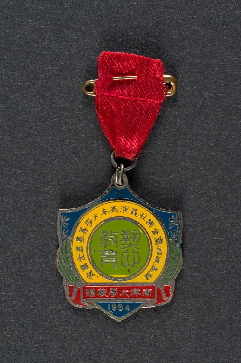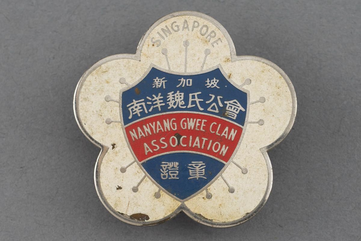 This 2 badges belong to Gwee Choon Gui and the words "Siong Leng Music Association" 湘灵音乐社 can be found on the badge. Mr Gwee is the brother of Mr Gwee Bock Huat and they are both co-owners of the Sin Sai Hong Opera troupe(新赛凤剧团). The troupe was first established in 1910 using another name and was performing gaojiaxi (高甲戏) back then. The troupe changed its name to “Sin Sai Hong” in 1936 and changed to performing gezaixi (歌仔戏) which was gaining popularity in the 1930s. It is the oldest Hokkien Opera Troupe in Singapore. The Sin Sai Hong collection donated to the National Museum also consists of old photographs, certificates and costumes.