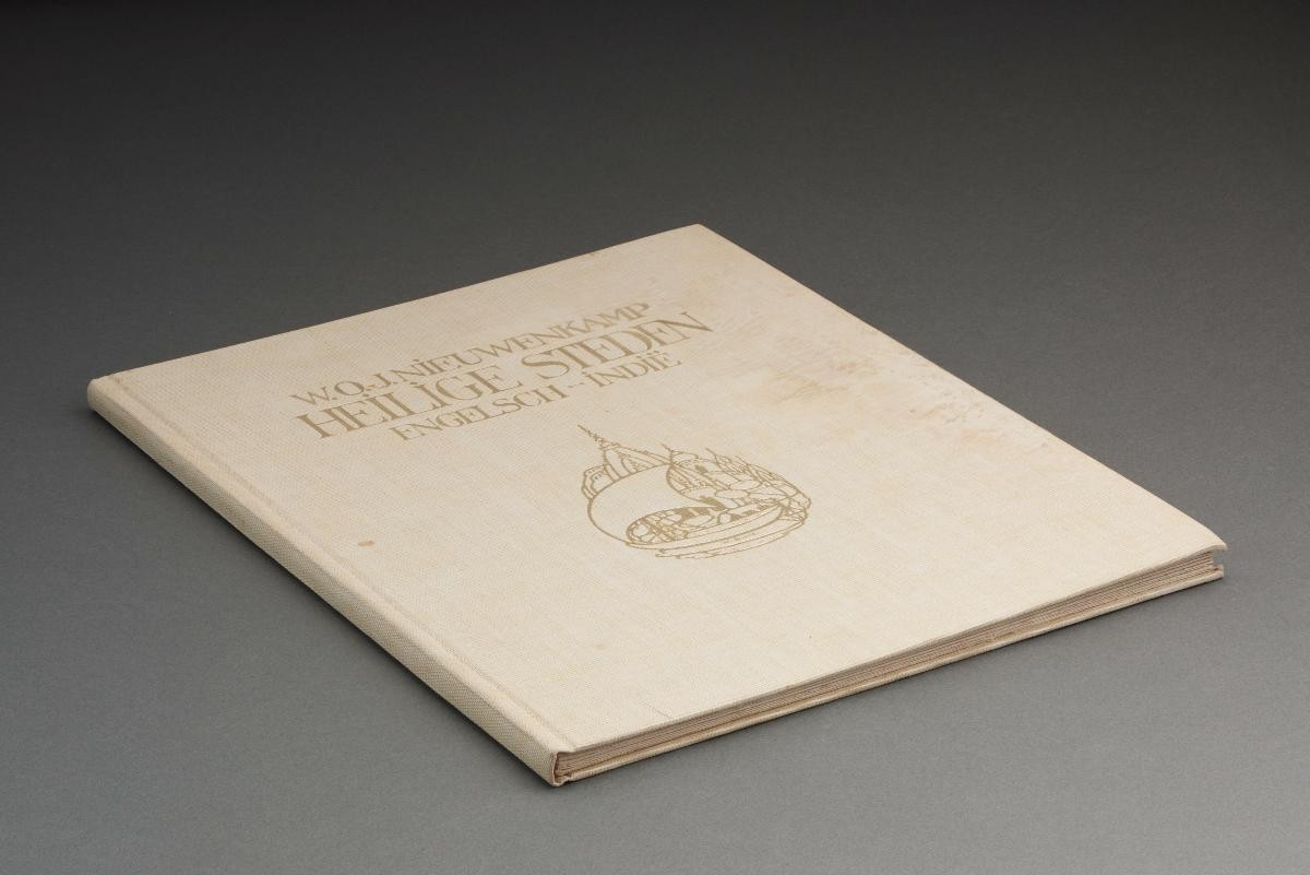 This is a brochure for 'Niederlandisch Indien', also known as the Dutch East Indies, now Indonesia. The image depicts a steamship in the background making its way towards the foreground, where two people stand and sit. They are dressed in batik cloth, and the woman, who wears only a batik skirt, carries a water container and has a flower in her hair. Above them is a tree which unrealistically has both coconuts and bananas hanging from it, representing the different tropical fruit that grow in Indonesia. Behind the ship a smoking volcano, a common motif in promotional material which advocated Indonesia as a land of volcanoes, idyllic landscapes and virginal forests. Notably, the colonial presence is minimised in this brochure, whilst it is the 'indigenous' aspects, which would appeal to the tourist, which are highlighted.