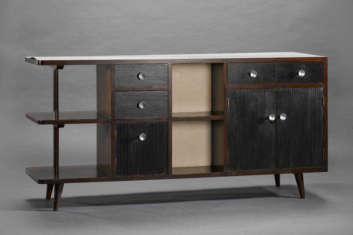 The distinct looking art deco table has a formica finished flat top. A corporate brand name, formica is also a type of plastic lamination which is easy to maintain. It was popular in households from the mid-20th century onwards.