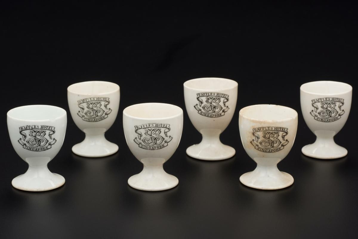 This is an egg cup with a stand. It was used in the Raffles Hotel.