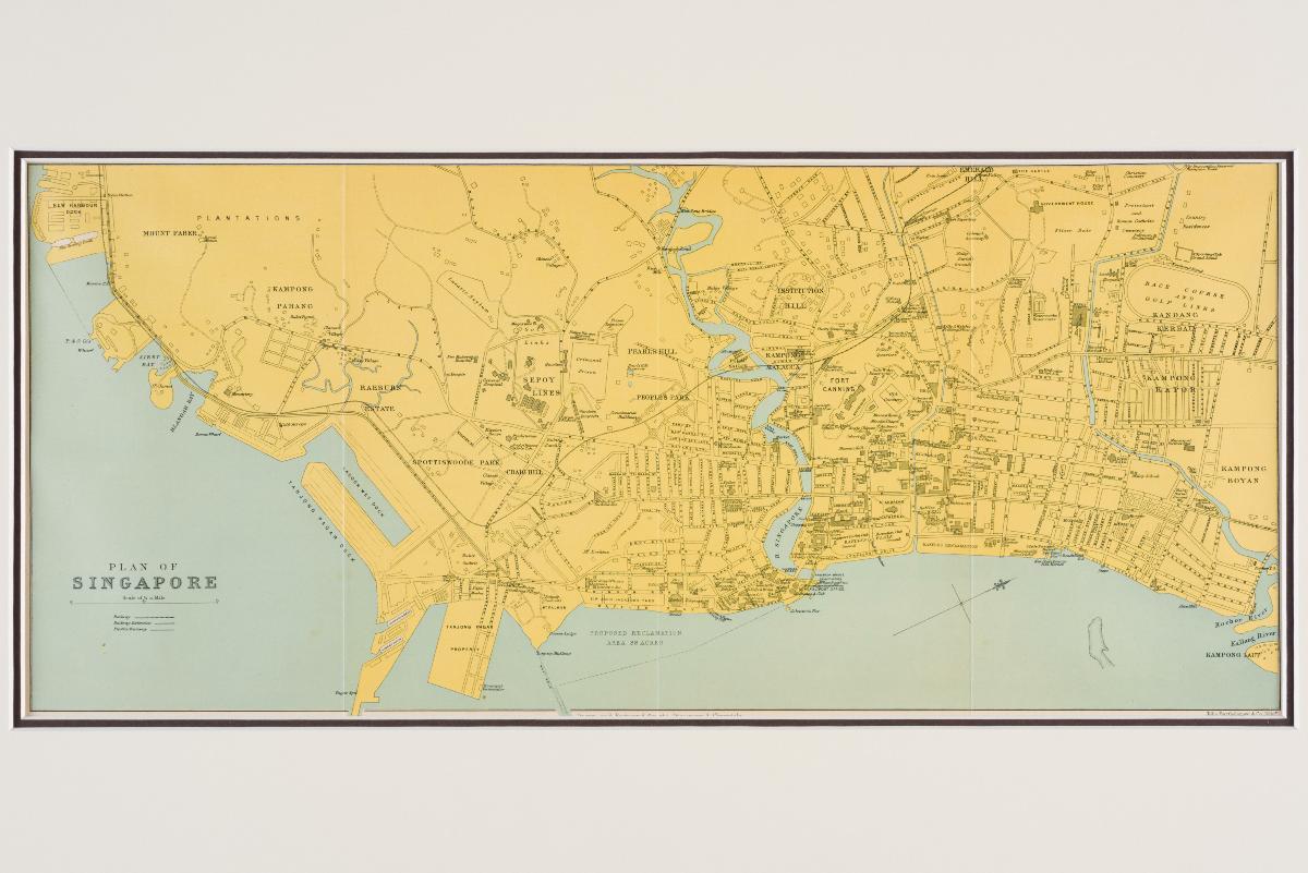 This is an early map of Singapore, roughly dating to 1830. It was taken from the Memoir of the Life and Public Services of Sir Thomas Stamford Raffles, written by his wife Lady Sophia Raffles. This map was previously displayed at the Raffles Hotel Museum.