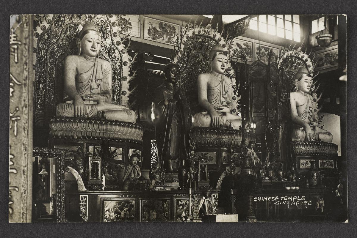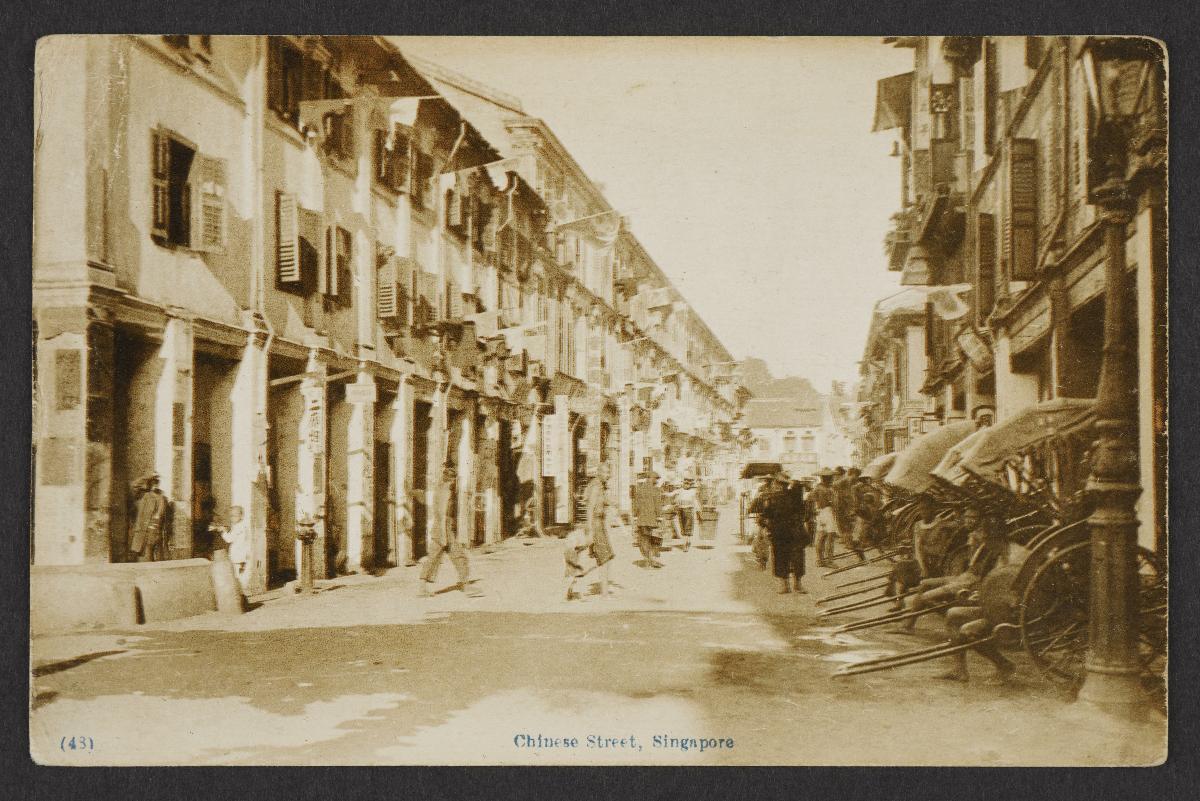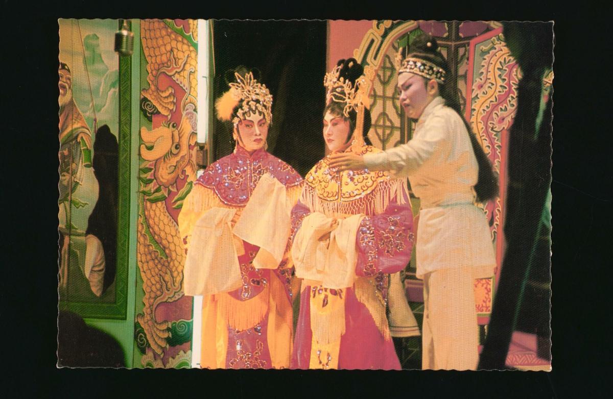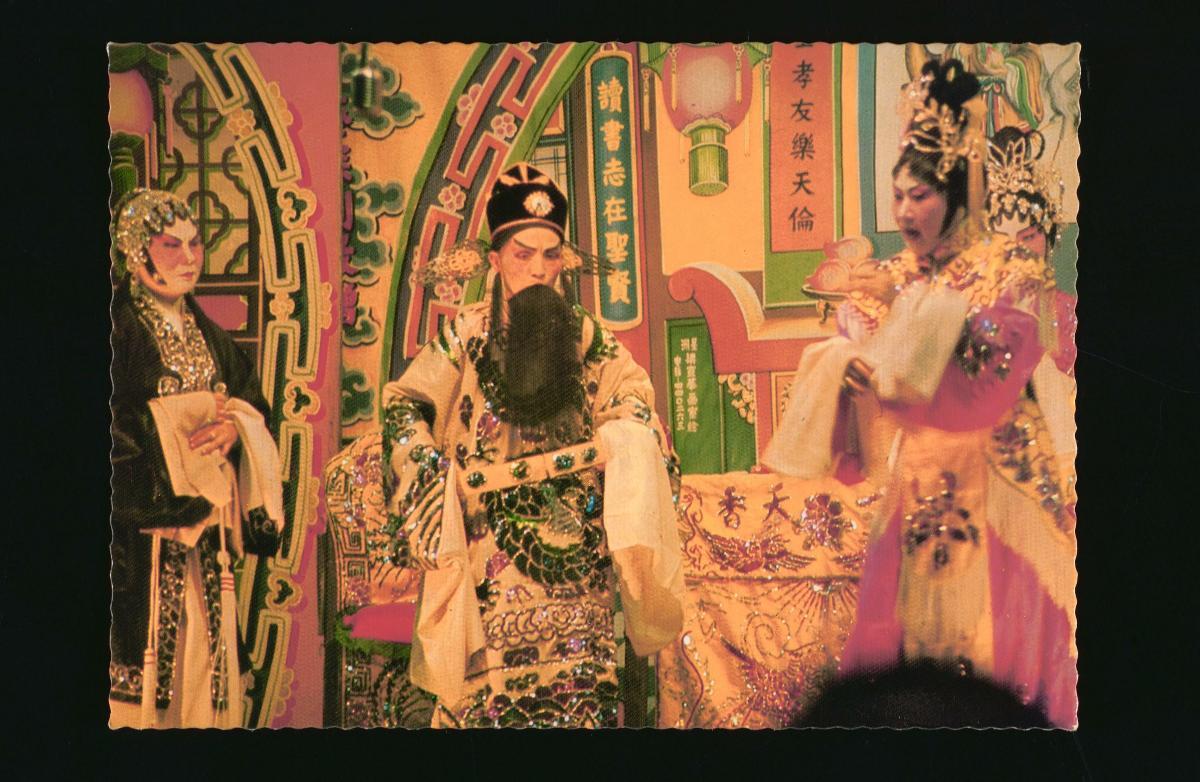 This is a postcard advertising travel to China, from roughly 1907. It depcts a female in traditional dress who holds a yellow flag with the royal symbol of the dragon on it. This postcard was previously collected by the Raffles Hotel Collection.