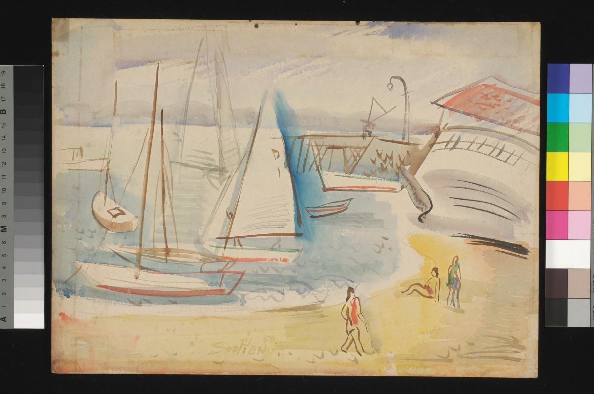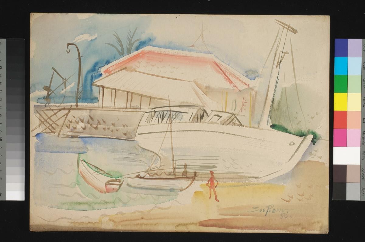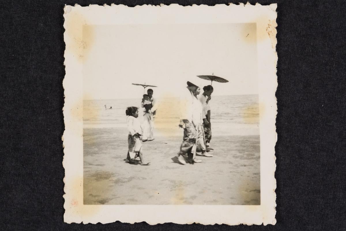 Apart from being an avid photographer, Chua Tiag Ming was instrumental in the development of photography in Singapore, having published 2 books on photography, particularly as reference guides for budding local photographers and serving in the committee of the Photographic Society of Singapore. "Untitled (Beach)" is a rare work that does not feature labourers at work but a couple taking a leisurely walk on the beach. His subjects were his brother and sister-in-law. The work shows a mastery of the use of light and shadow and a distinct aesthetic in its focus on the human form in action.