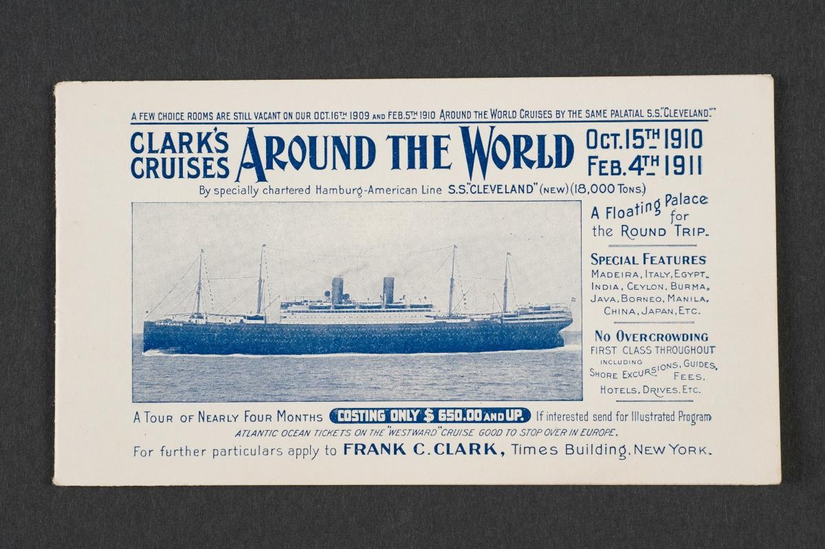 "These are a collection of memograms drawn by Flora and Martin DeMuth, a married couple travelling on board The Empress of Britain. A memogram is pictorial memoranda in the form of illustrated letter sheets; calendars; information sketches of foreign products and strange customs; lecture maps and diagrams; cartoons; entertainment announcements; souvenir postcards and sketches of native types. These were commissioned by cruise companies as promotional material, boosting a companies reputation as a world travel company."