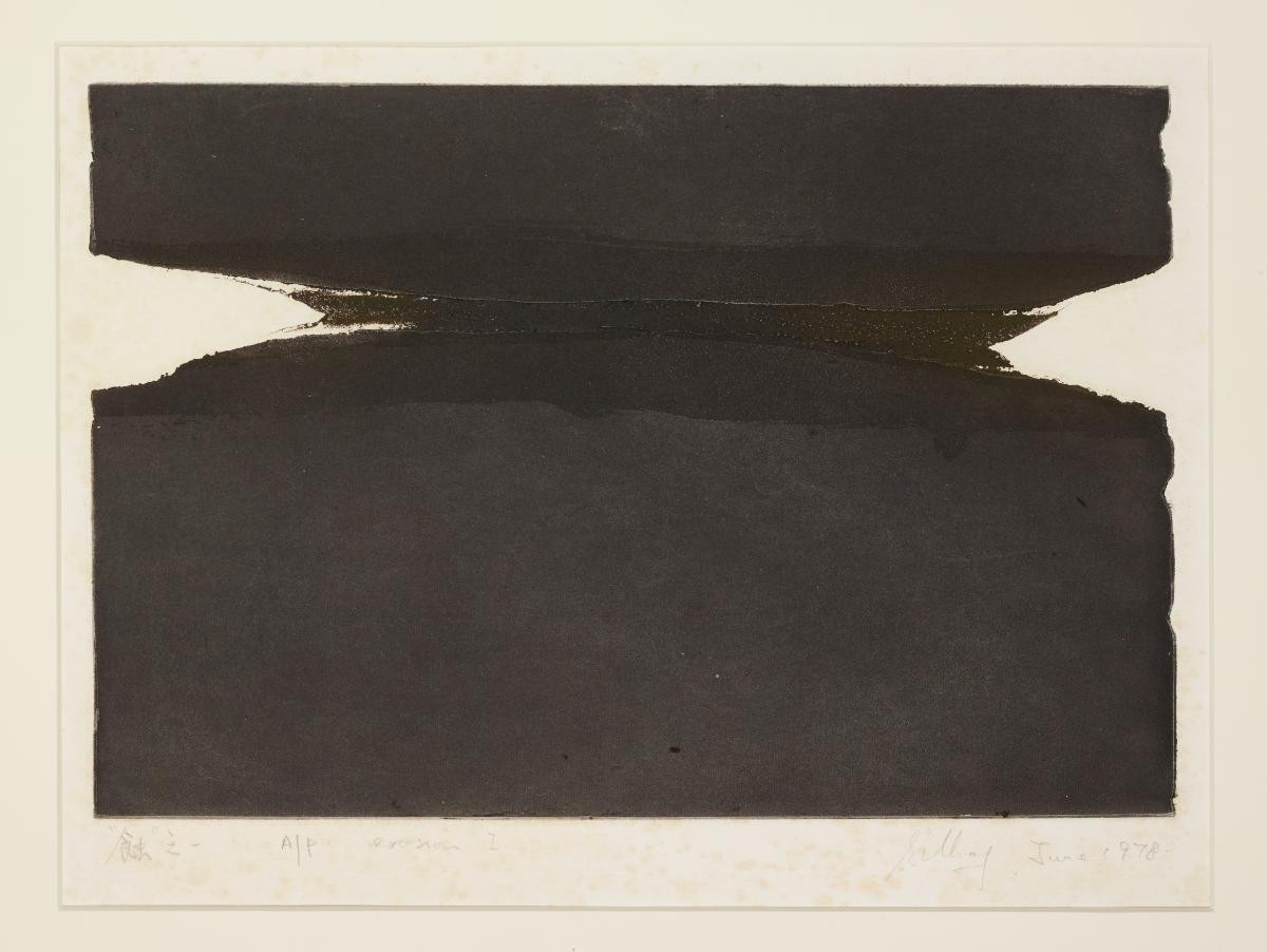 The art of Han Sai Por has always been centered on nature and natural forms. Flow Through The Land and Water Erosion are part of a body of work created by Han during an artist residency with the Singapore Tyler Print Institute. In line with her minimalist sculptures, these paper-based works retain an economy and poetry of form that suggest and capture a multitude of elemental energies.With Water Erosion, the paper print takes on a sculptural quality as its centre is hollowed out into a trough filled with pellets resembling seeds, or stones. The curves that wrap around these pellets are evocative of multiple forms with generative or life-giving properties: a riverbed, the inner cavity of a seeded fruit, or a womb.