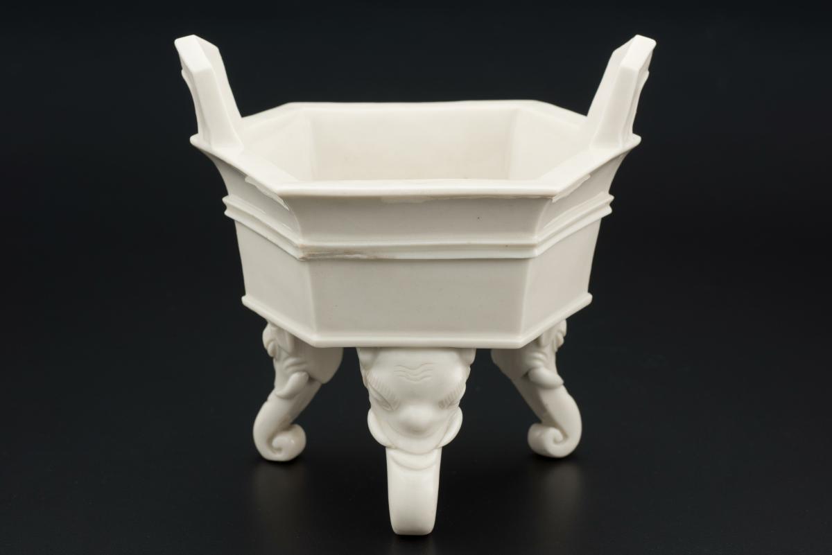 This miniature censer with a pair of fish-shaped handles, is covered with an olive-green glaze. It is a product of the Longquan kilns, which rose to prominence during the Song and Yuan dynasties as one of the prime manufacturing centres of greenwares. The varying amounts of iron oxide in the raw materials and fluctuations in firing conditions resulted in glazes that ranged from a cool bluish-green to warmer olive-green tones. The finest Longquan vessels possessed a smooth and lustrous glaze that resembled jade. Longquan wares appealed to both local and overseas clients. Many were exported to foreign markets that included Japan, Southeast Asia, and the Middle East.