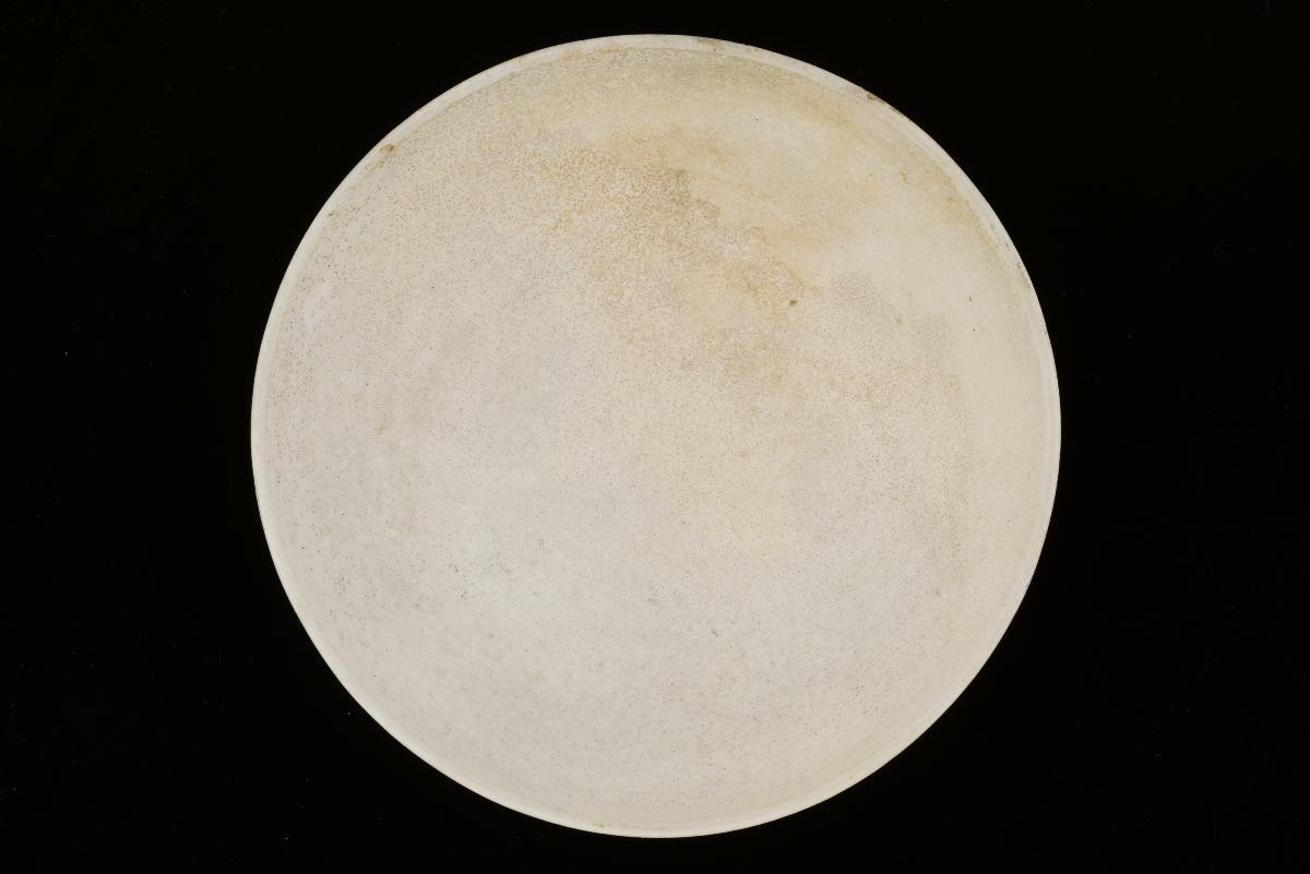 This bowl has a “bi-disc” foot which means that the circular foot has a circular indentation in the middle. Approximately 300 pieces of white wares were excavated from the Tang shipwreck, a 9th-century vessel en route from China to the Middle East when it sank off the coast of Belitung Island in the Java Sea. Chinese white wares like this cup were immensely desirable, both within China and abroad during the Tang dynasty. Their popularity abroad is evident from discoveries throughout Southeast Asia and the Middle East. These white wares were generally made at the Xing kilns in northern China. They were named after Xingzhou, in southern Hebei, where they were made. The pure white body is a result of the combination of the makeup of the clay and firing it at high temperature. The glossy white appearance was often likened to silver and snow.Because they were submerged underwater for centuries, some bowls in this group have discoloured or been encrusted with coral.